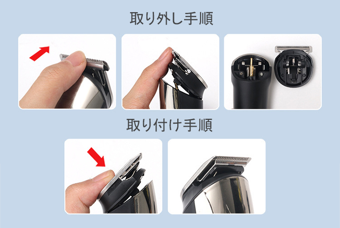 セット内容:本体*1+シェービングヘッド*6+カットコーム*4(3mm、6mm 、9mm、12mm、1/2/3/4mm)+クリーニングブラシ*1+USB充電ケーブル*1+充電ベース*1+収納袋*1+櫛*1+ヘアカット用ケープ*1