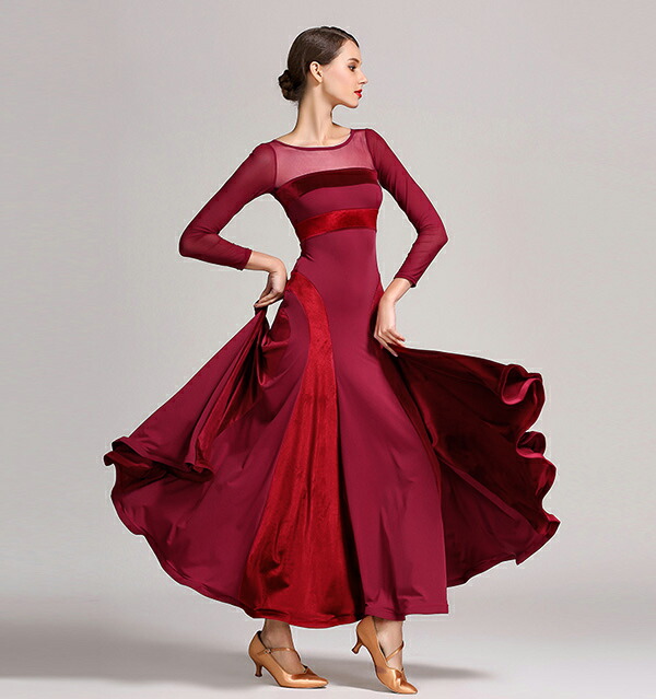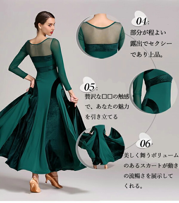 動画あり【楽天1位】高品質 社交ダンス ドレス 長袖 スタンダード 社交ダンス衣装 ワンピース 黒 広がる裾 ワンピース スタンダード レッスン着 発表会 競技着 練習着 演出用 スタンダード ワルツ専用ドレス ロング丈 オールシーズン黒 緑 赤 s m l xl 2xl 3L