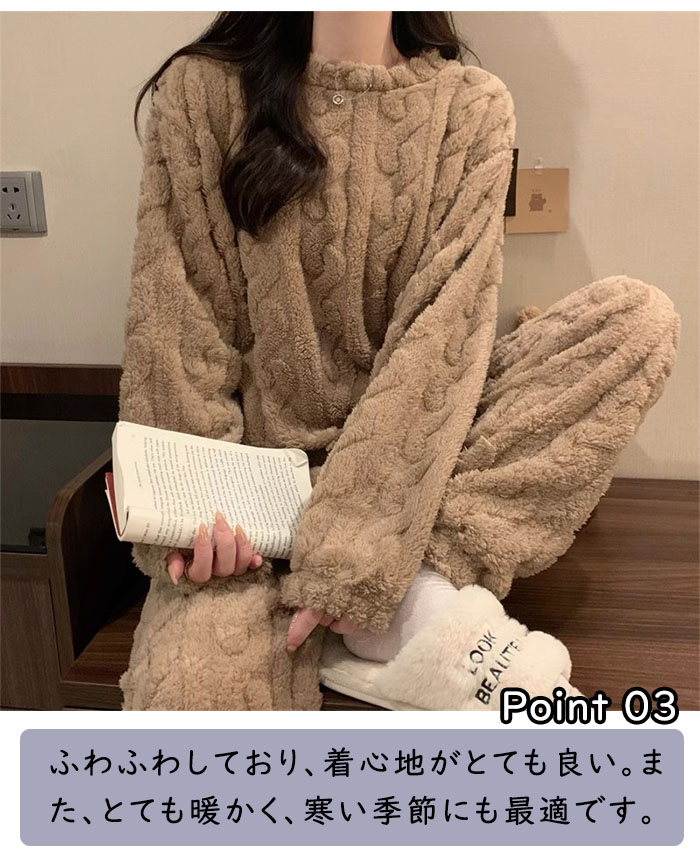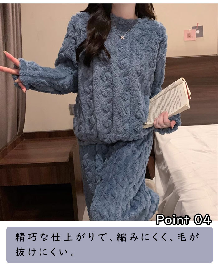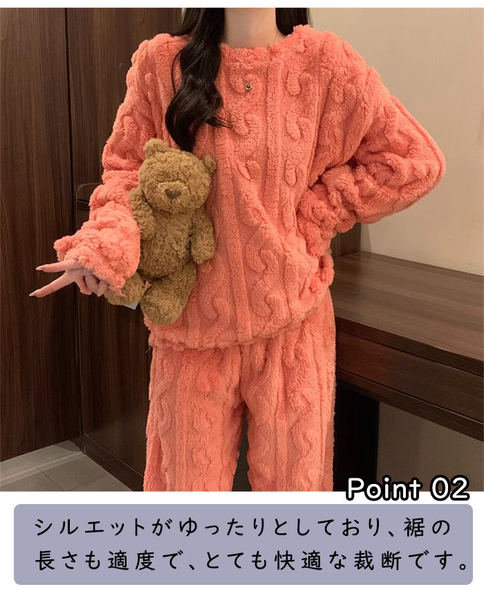 商品名:パジャマ レディース フランネル ルームウェア 上下セット ゆったり ふわふわ もこもこ 長袖 保温 防寒 裏起毛 厚手 秋冬 暖かい セットアップ 女性 大人 部屋着 婦人服 寝巻き 可愛い