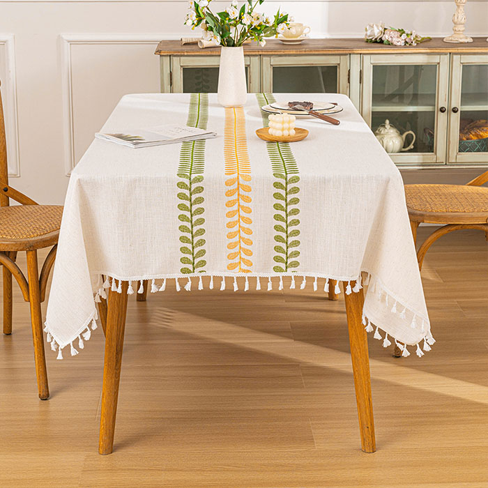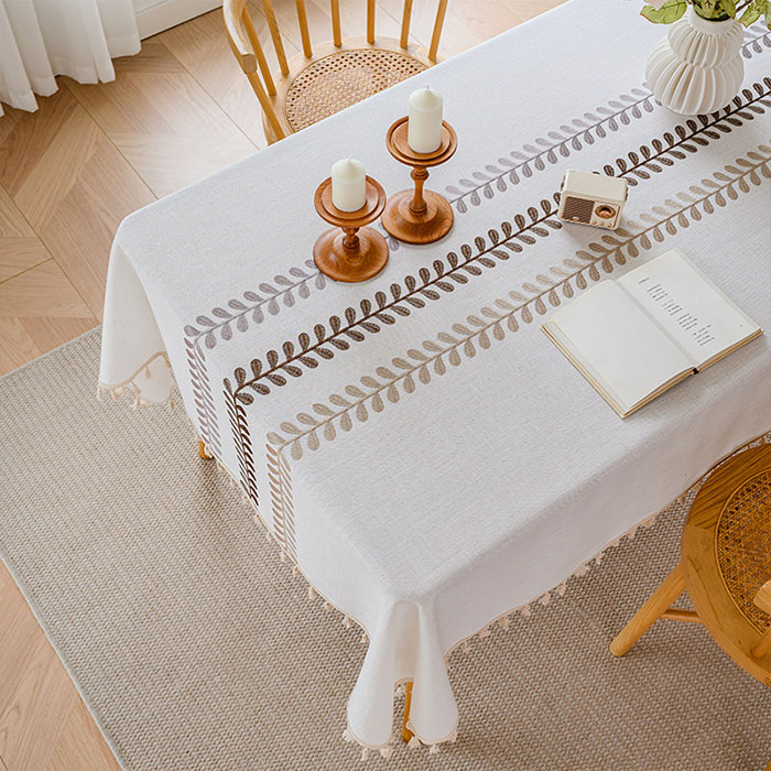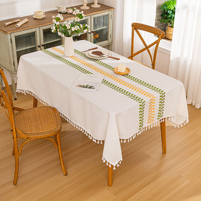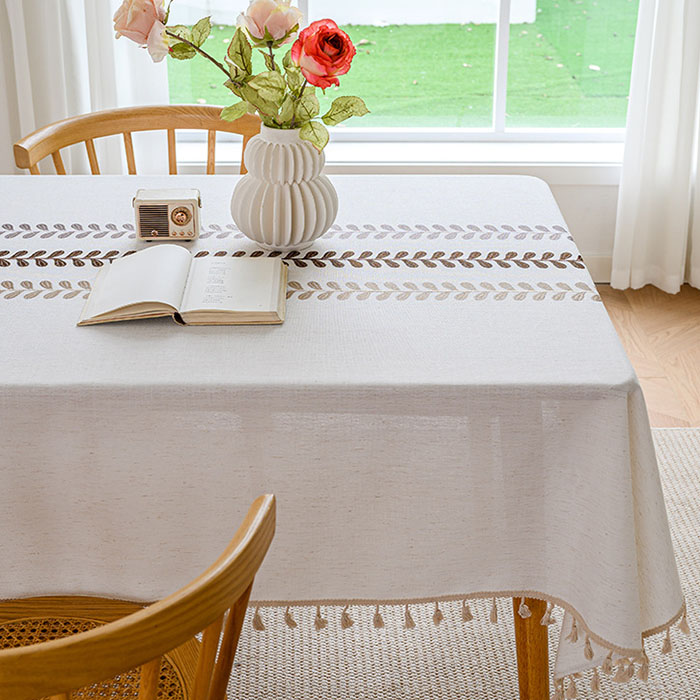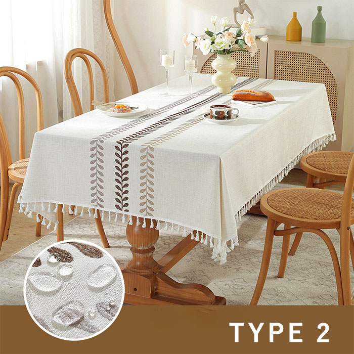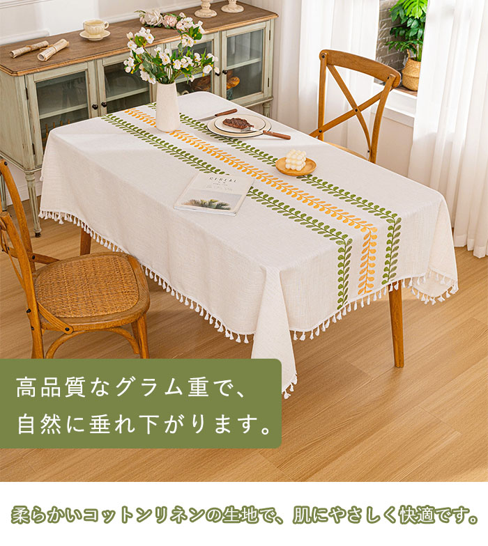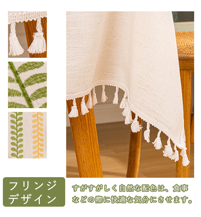商品名:テーブルクロス おしゃれ 撥水加工 葉し タッセル ボーダー チェック 長方形 正方形 無地 テーブルマット マルチカバー 新生活 布 和風 在宅 キズ防止 汚れ防止 マット 食卓カバー テーブルカヴァー 和風 新生活 送料無料