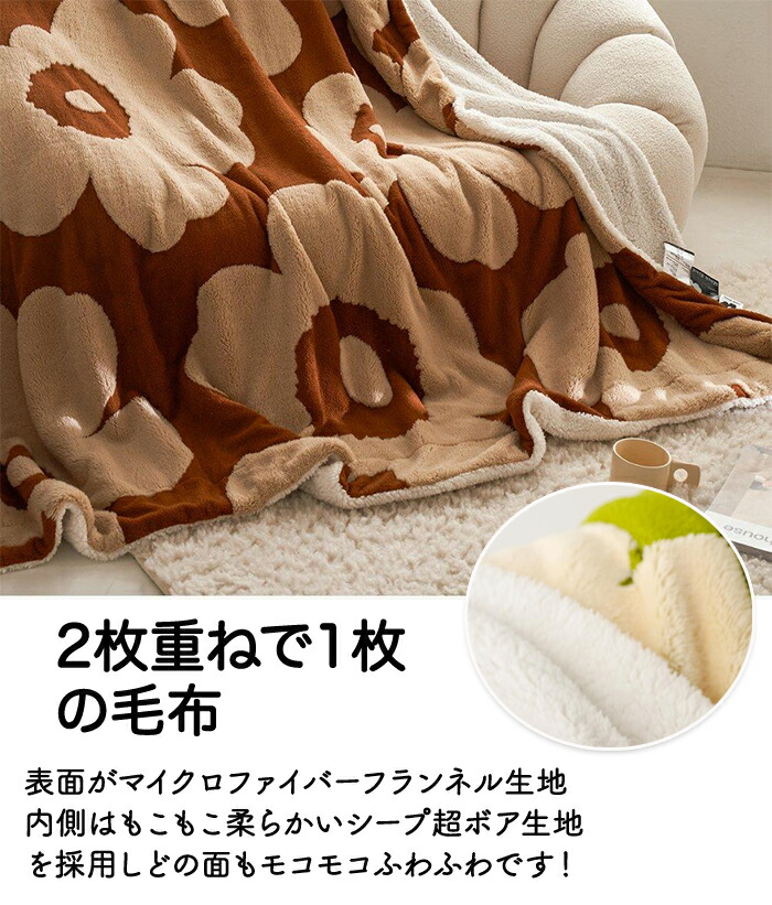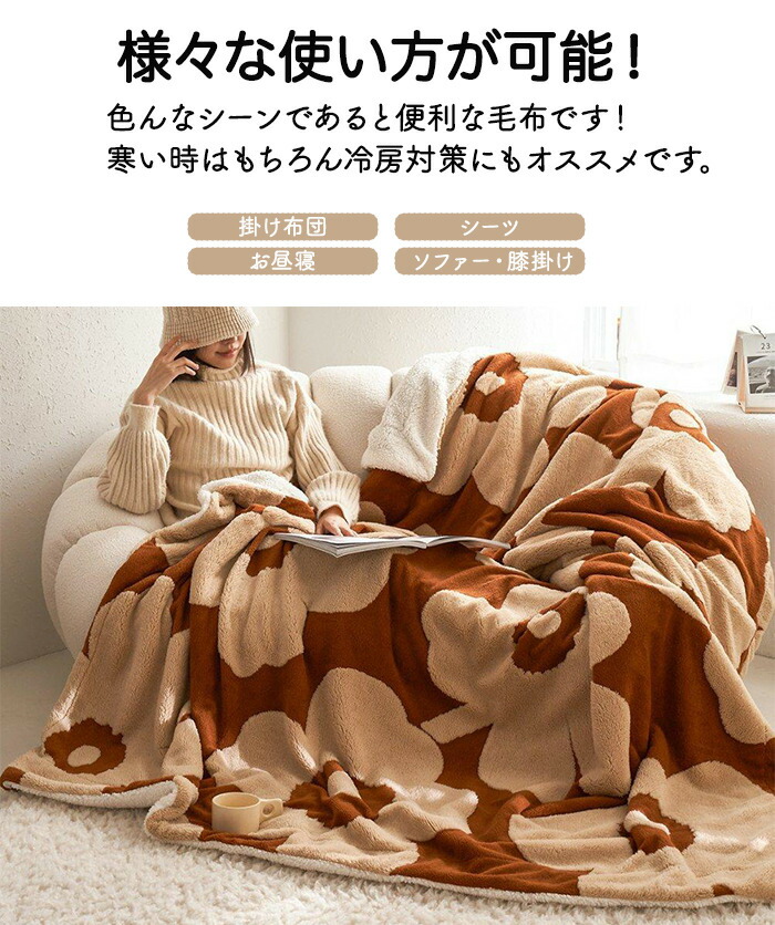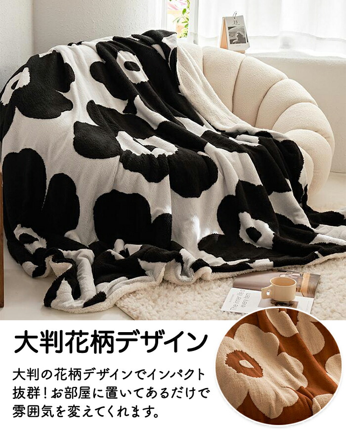 商品名:毛布 モコモコ毛布 ブランケット 温かい ふわふわ 丸洗い可能 洗える 毛が落ちにくい ゴミがつきにくい 毛羽立ちにくい おしゃれ リビング 冷房対策 ふわもこ ふかふか ふわふわ毛布 膝掛け ソファー用 ソファー毛布 花柄 大判花柄 吸湿発熱 掛け布団 ボア 北欧 冬 秋冬