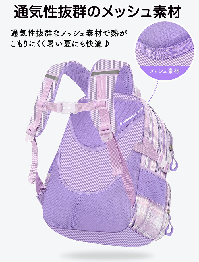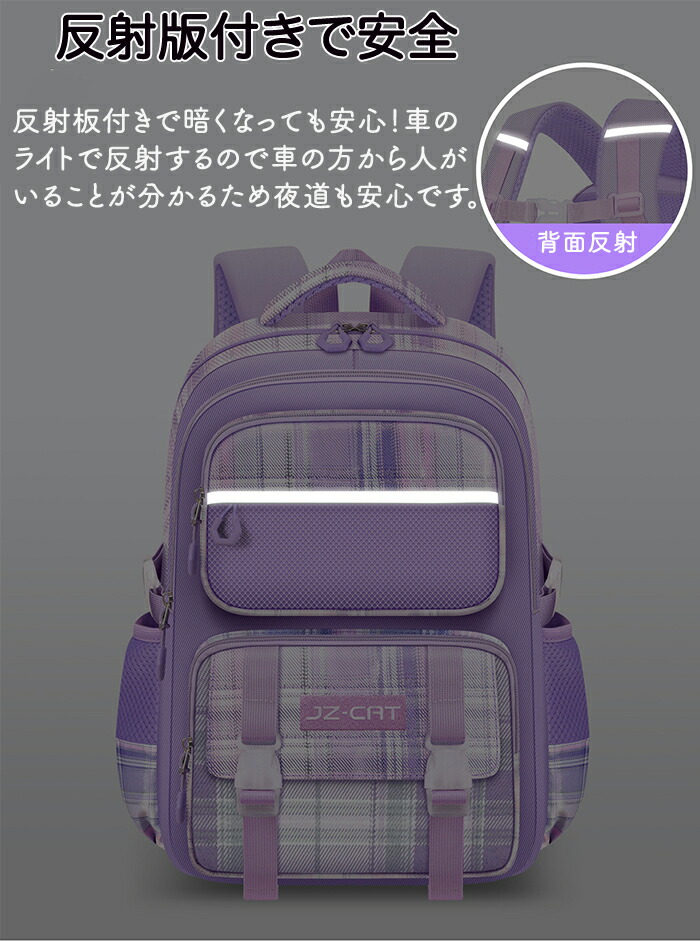 通学、通園だけではなく、遠足も、旅行もできます チェック柄リュックサック 大容量で収納ポケットたくさん 反射板付き 防水加工で洗える コンパクトに折り畳める 楽しい成長