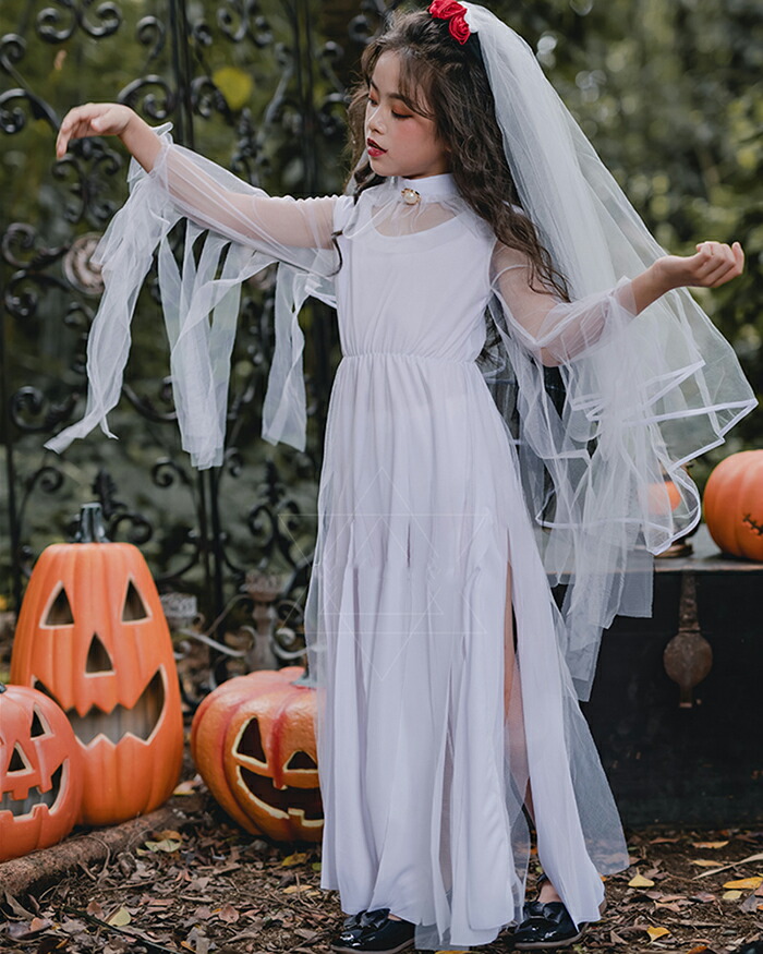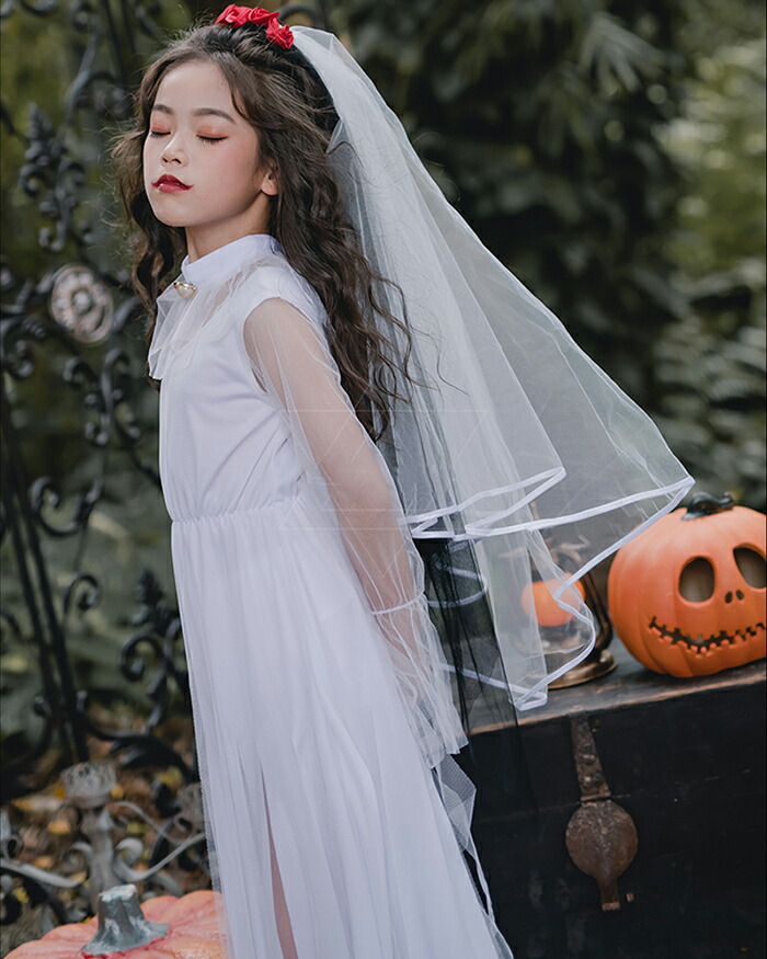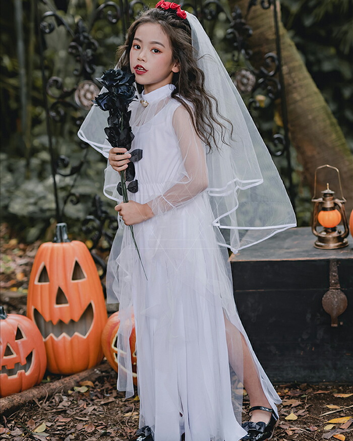 商品名:ハロウィン 仮装 ゾンビ 子供 キッズ 女の子 花嫁ゾンビ 鬼嫁 ベール付き 大人 子供 親子 コスプレ ゾンビ おに エンゼル お姫様 幽霊 コスチューム 仮装 コスプレ衣装 可愛い パーティー ステージ 舞台 演出服 お化け 屋敷変身 イベント 学園祭 文化祭 余興 白 黒