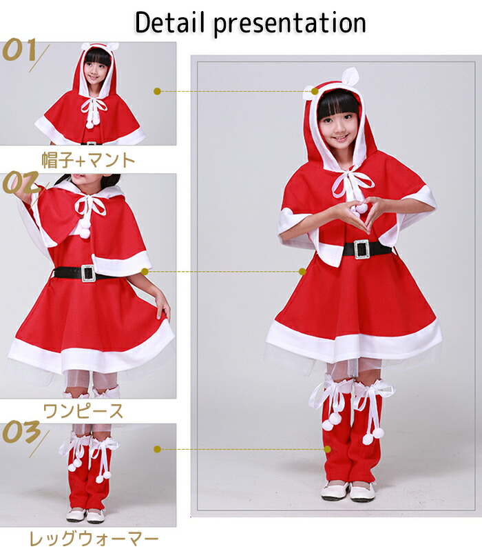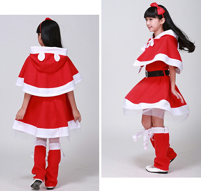 商品名:サンタクロース 衣装 子供 コスチューム クリスマス サンタコス ペアルック 親子ペア 4点セット ワンピース マント ベルト レッグウォーマー 帽子付き パーティー 仮装 学祭忘年会 イベント 親子服 女の子 コスプレ 可愛い 仮装 子供 発表会 学園祭 cosplay 120-170cm