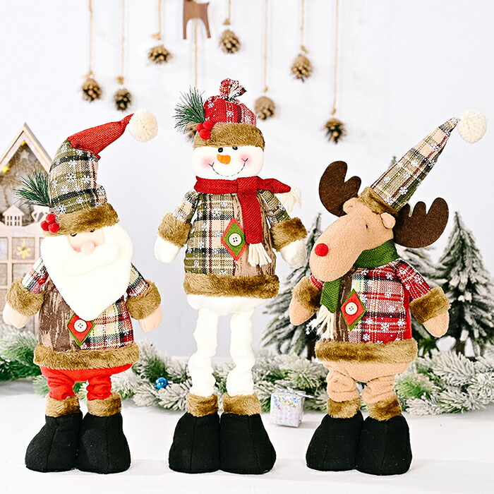 商品名:クリスマス クリスマスオーナメント テーブルデコレーション サンタクロース トナカイ 雪だるま 置物 人形 伸縮でき ぬいぐるみ 室内 部屋 店舗用 装飾用 屋内 玄関 パーティー 卓上装飾 クリスマス飾り おもちゃ 写真撮影 小道具 癒し系 お祝い プレゼント