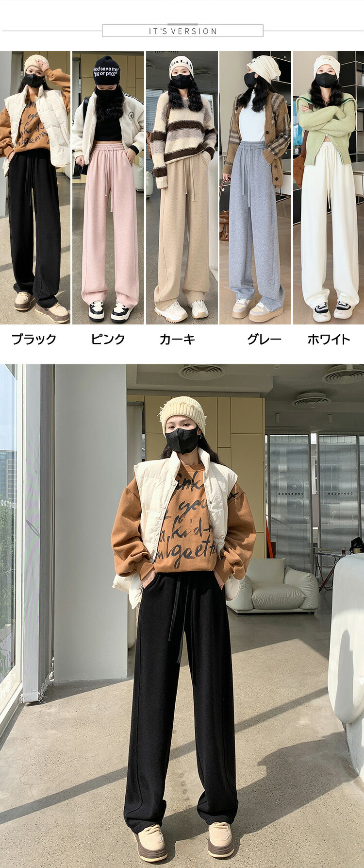 horizontal-key: ブラック-裏起毛あり ピンク-裏起毛あり カーキ-裏起毛あり グレー-裏起毛あり ホワイト-裏起毛あり ブラック-裏起毛なし ピンク-裏起毛なし カーキ-裏起毛なし グレー-裏起毛なし ホワイト-裏起毛なし