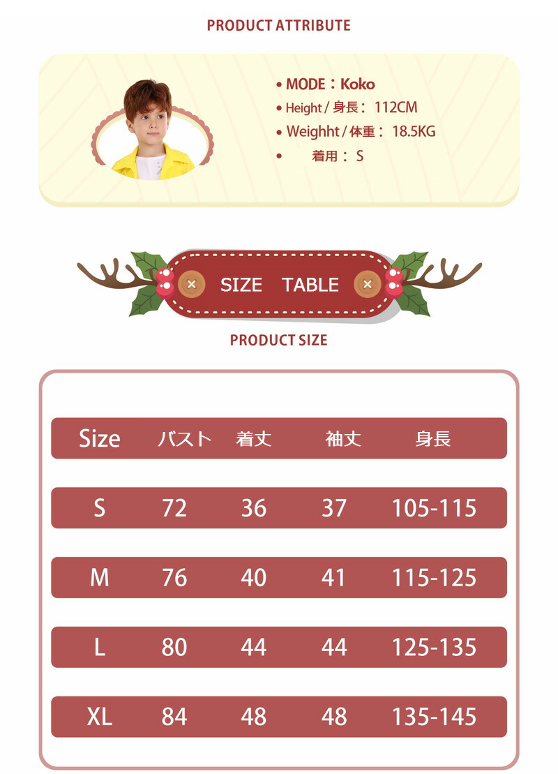 vertical-key: S(105cm-115cm) M(115cm-125cm) L(125cm-135cm) XL(135cm-145cm)