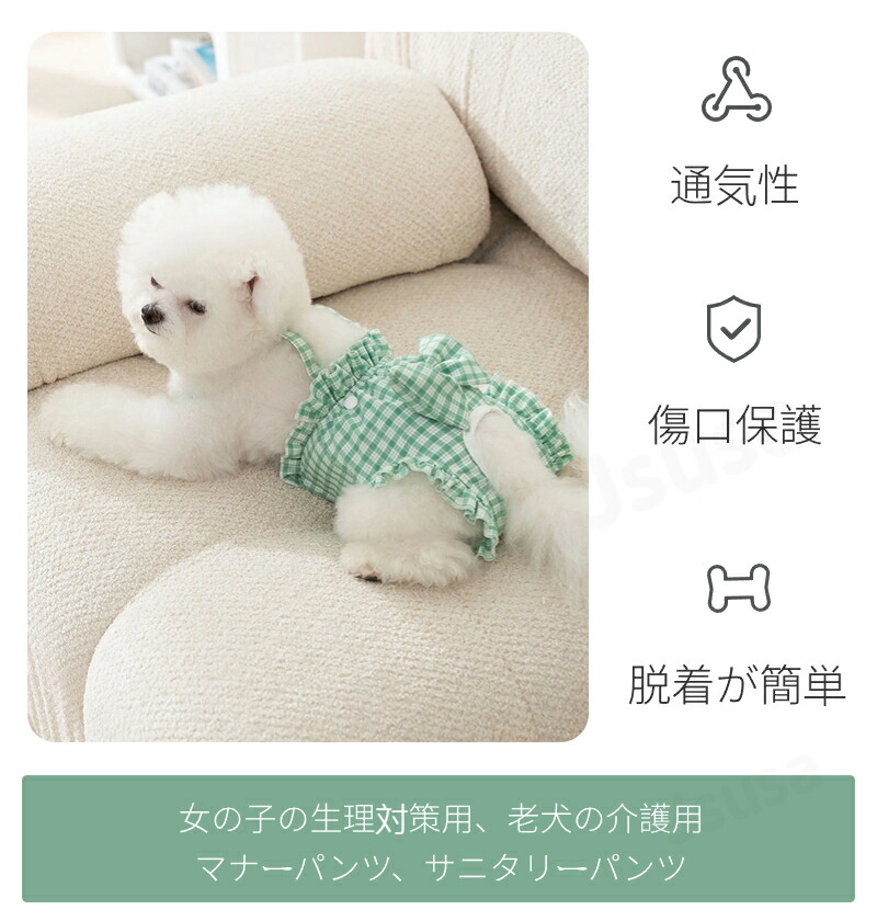 老犬の介護用や女の子の生理対策用マナーパンツ、サニタリーパンツ
