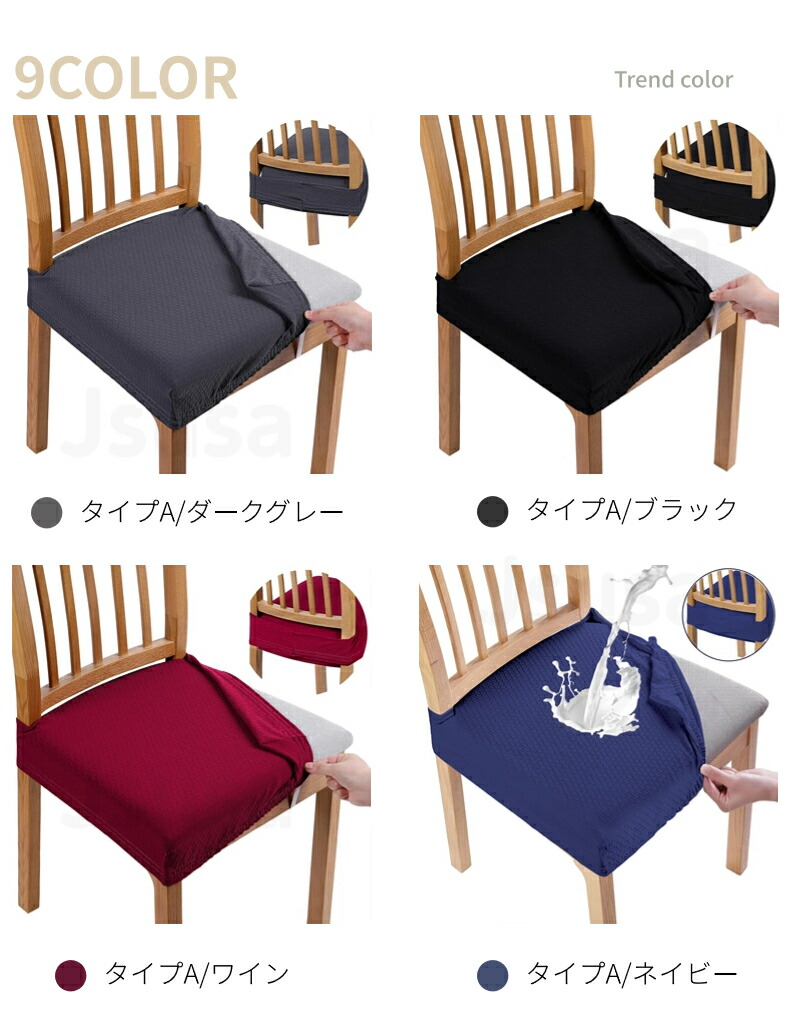 模様替え 椅子カバー 座面のみ 防水 家庭用 超弾力 無地 簡単着脱 ぴったりフィットなチェアカバー イスの模様替えや汚れ防止に最適