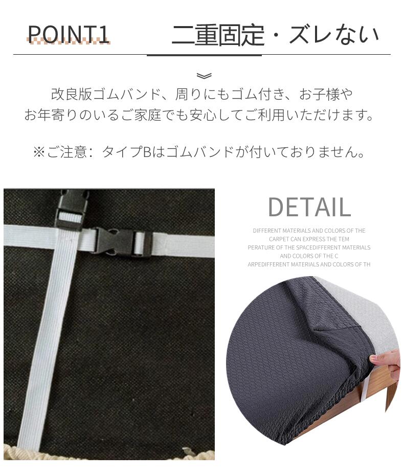 改良版ゴムバンド、周りにもゴム付き、お子様やお年寄りのいるご家庭でも安心してご利用いただけます。