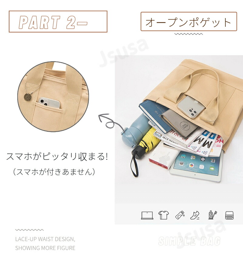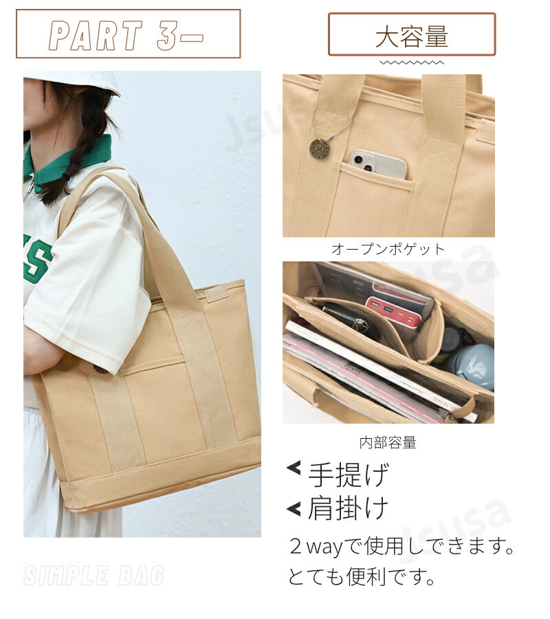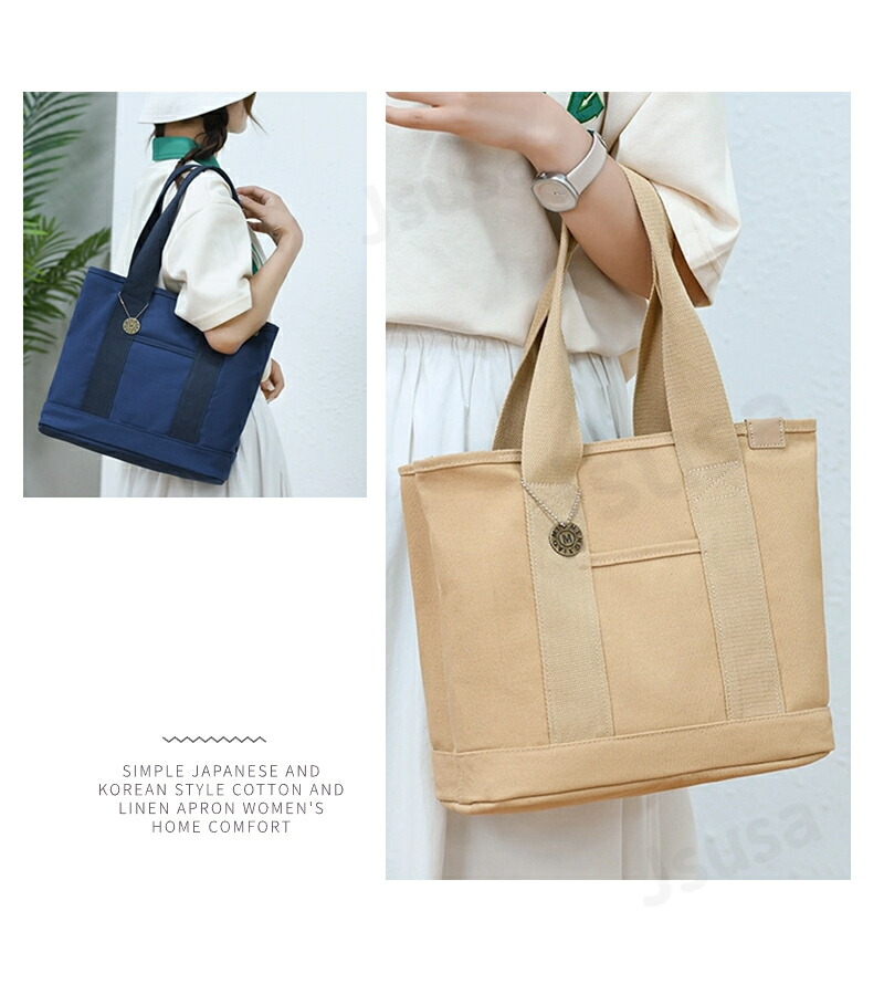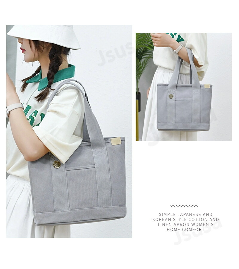 トートバッグ レディース キャンバス 多機能 a4 ポケット バッグ シンプル おしゃれ お買い物バック 収納バッグ 持ち運び 肩掛け 旅行 仕事用 通勤通学 大容量 マザーズバッグ 多収納 横 大き