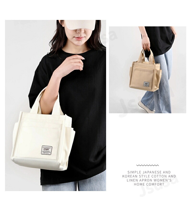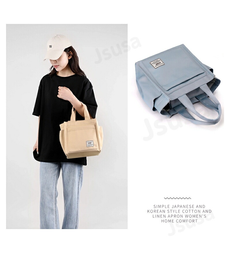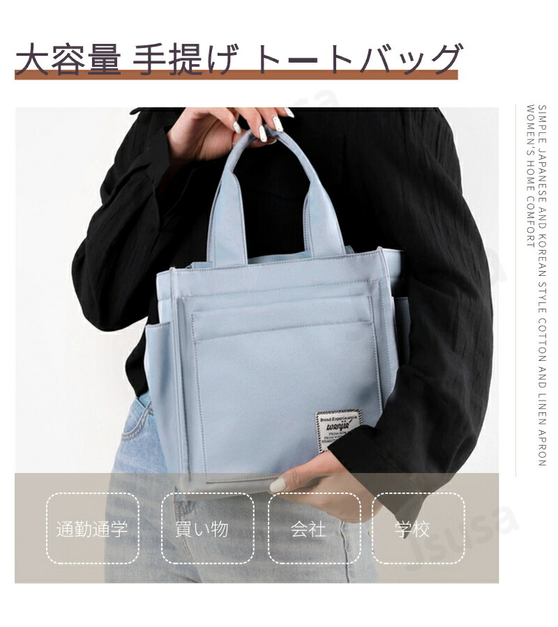 たくさんポケット 大容量 手提げ ファスナー付き 無地 おしゃれ 多収納 マグネット付きバッグ 小物 ブランド雑貨 バッグ レディースバッグ トートバッグ