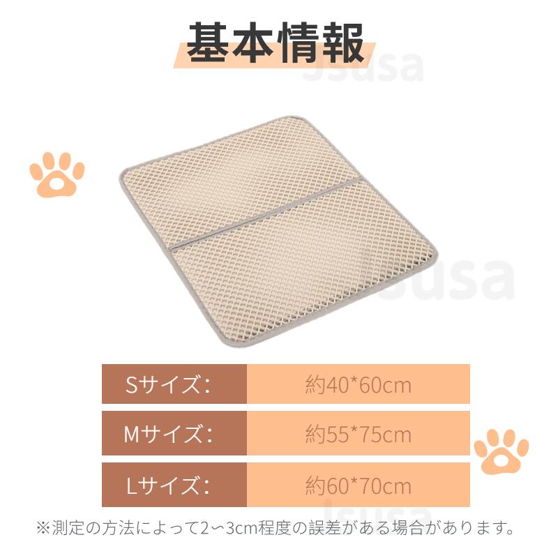 猫砂の飛び散り防止に便利な砂取りマットです。