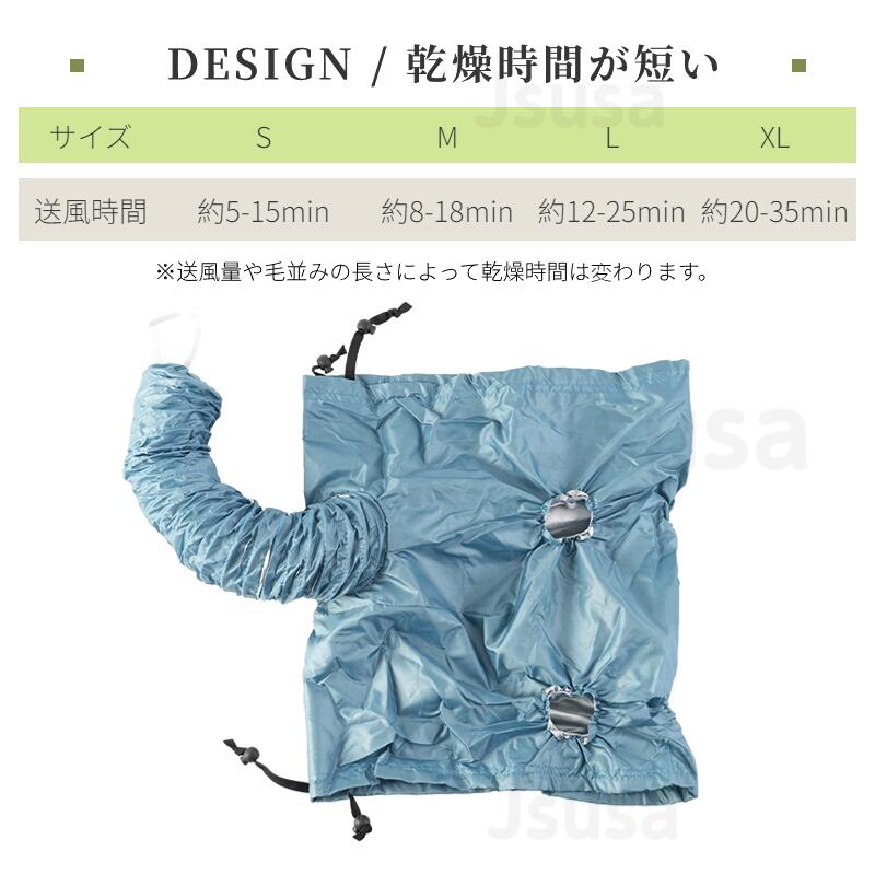 ペット用乾燥袋を使うことで入浴後や水浴び後のペットの毛をすぐに乾かすことができます。