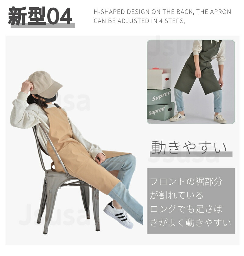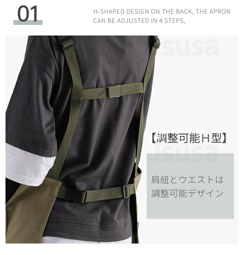 簡単に着れるH型で、長さを調節できるので、様々な体型の方にフィットし、男女共通です。