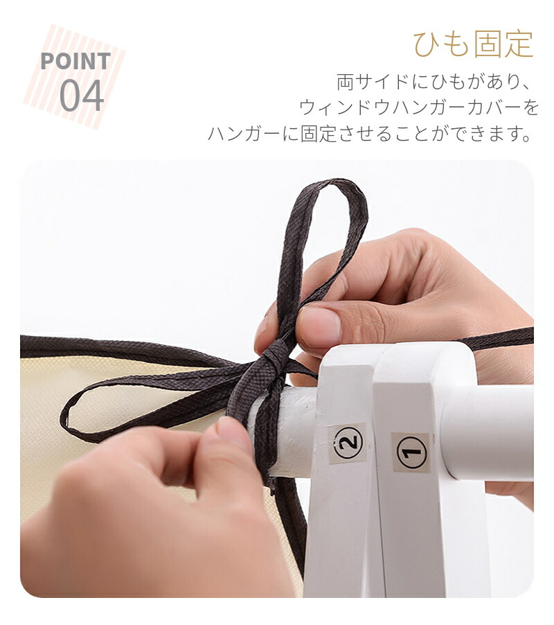 洋服カバーの取り付けもシンプル サイドのひもを結ぶだけですみます。