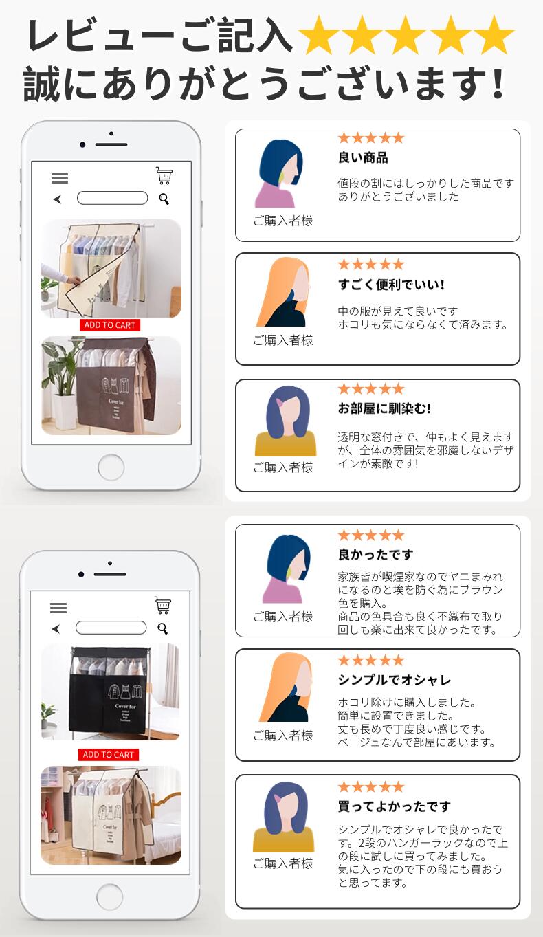 クローゼット内や、ハンガーラックに掛けた洋服をホコリからガード。