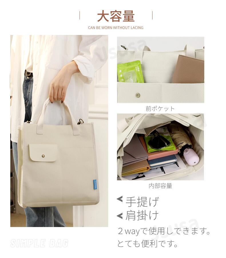 トートバッグ レディース キャンバス 多機能 大きめ a4 バッグ シンプル おしゃれ お買い物バック ボタン 収納バッグ 持ち運び 便利 無地 高耐久 四季適用 通勤 2way ショルダーバッグ 手