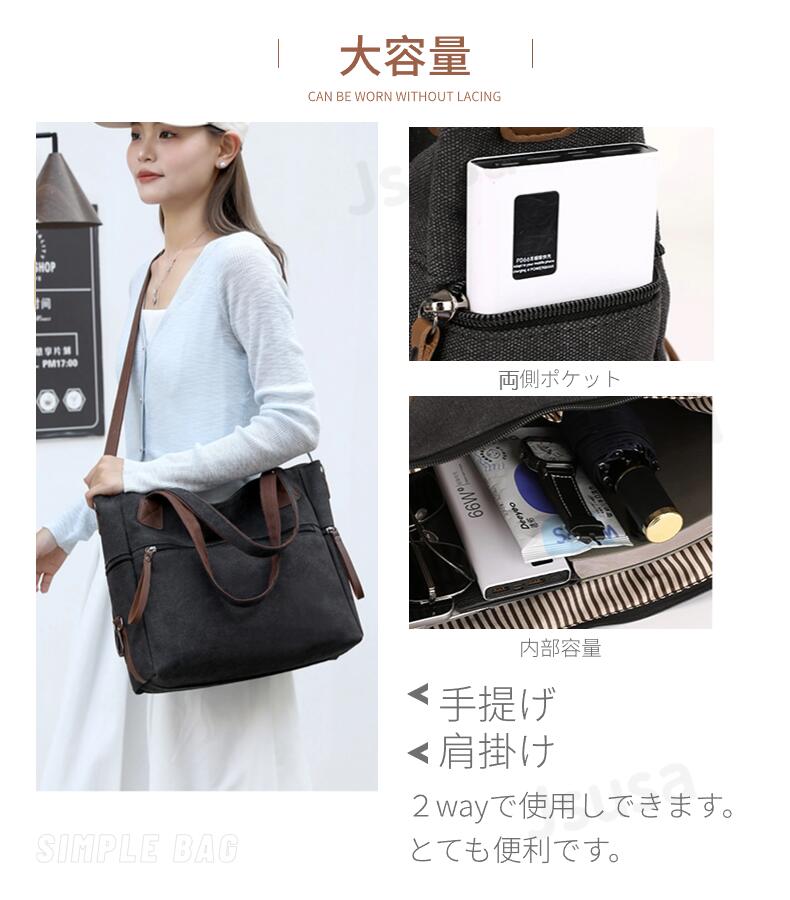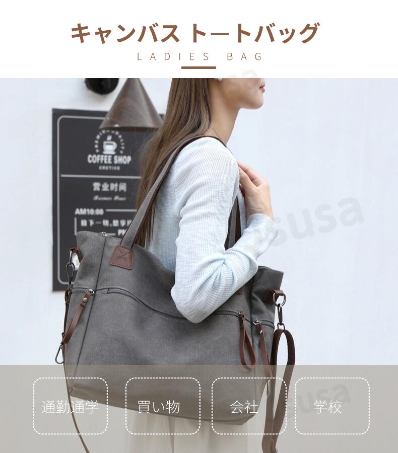 2wayトートバッグ レディース バッグ 厚手 キャンバス a4 バッグ シンプル おしゃれ ファスナー付き 大容量 通勤バッグ 持ち運び 通学 手提げ 肩掛け 仕事用 ママバッグ 普段使い マザーズ
