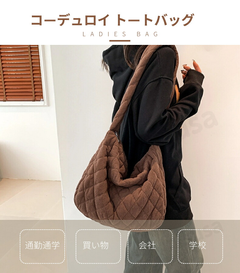 トートバッグ レディース コーデュロイ バッグ 大きめ a4 シンプル おしゃれ お買い物バック 収納バッグ 持ち運び 便利 無地 高耐久 通勤 韓国風 肩掛け 手提げ マザーズバッグ エコバッグ シ