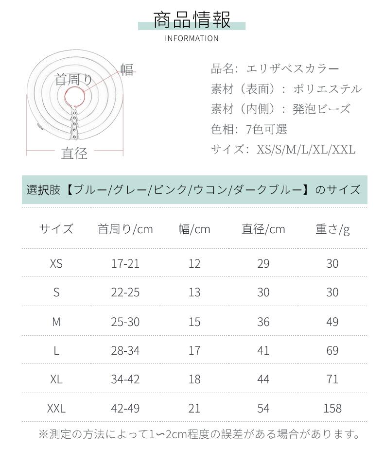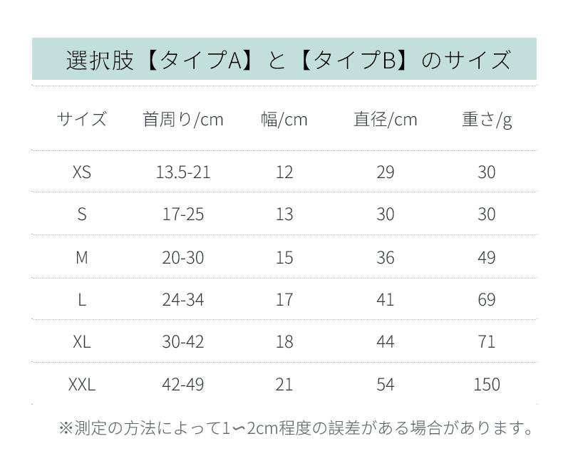 XS (首周り)約13.5-21cm(幅)約12cm(直径)約29cm (厚み)約2.5cm 重さ(約)30g