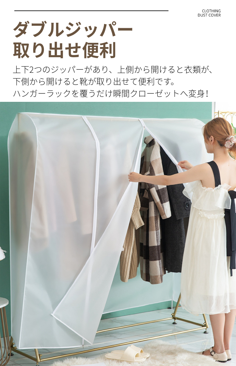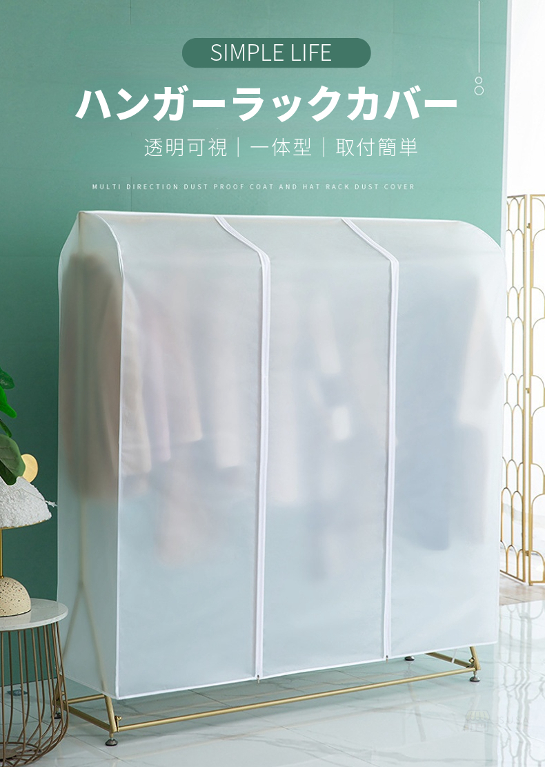 ハンガーラックをすっかりカバーできるので、ベッドルーム、ベランダ、洋服ラックなど様々な場 所にご利用頂けます。