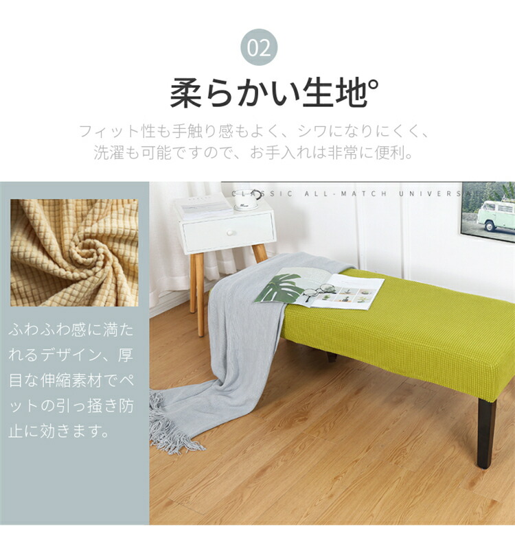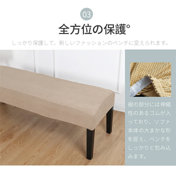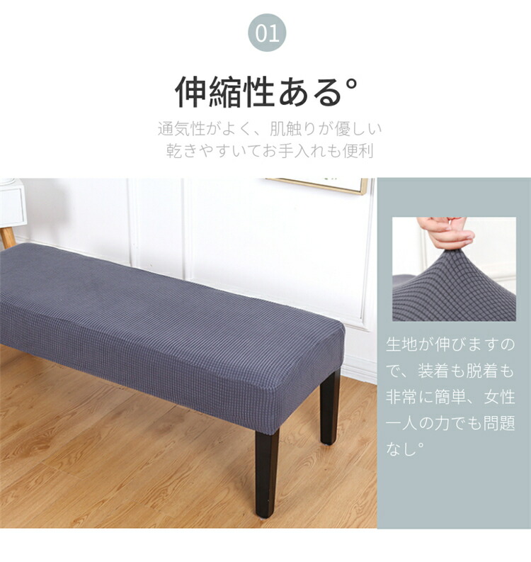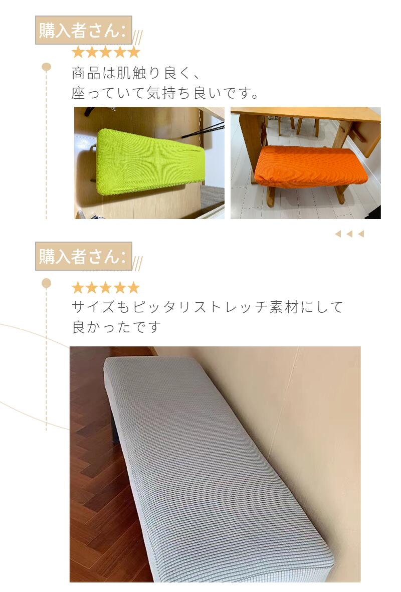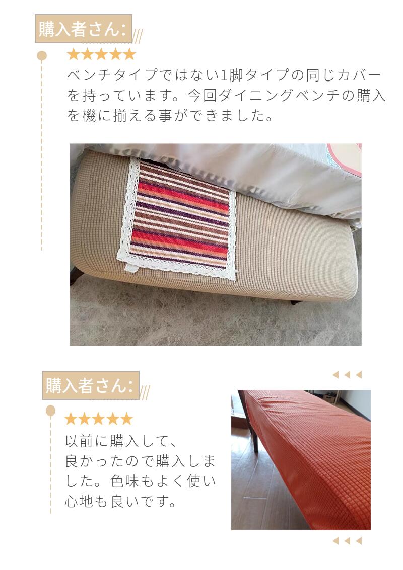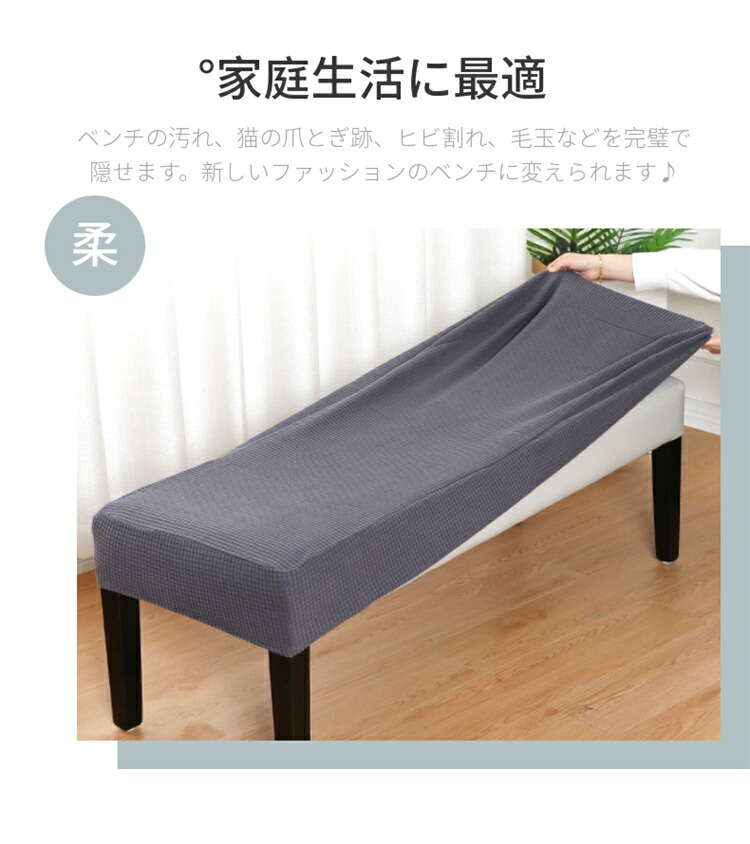 縦横に程よく伸縮するストレッチ素材が、ダイニングベンチやロングスツールなどの長椅子にぴったりフィット!