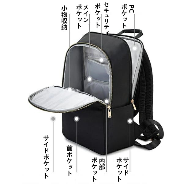 シンプル 通学 デート 旅行 デイライフ 軽い 女性 女子 大人 中学生 高校生 学生 子供 低学年 多機能 撥水 大きめ 可愛い プレゼント 11インチ~15.6インチ ブラック