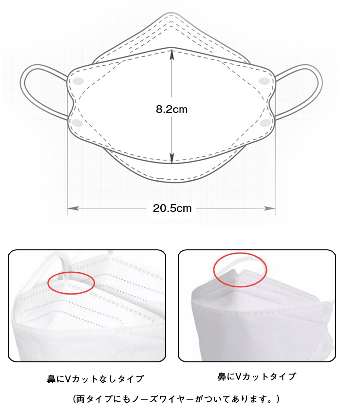 ※鼻にVカットタイプとVカットなしタイプに発送いたします。予めご了承ください。