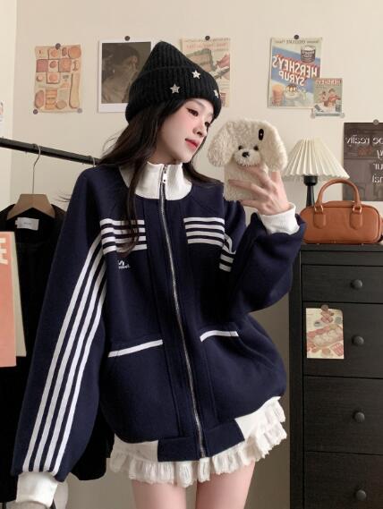 ライン刺繍スタジャンベースボールジャケ