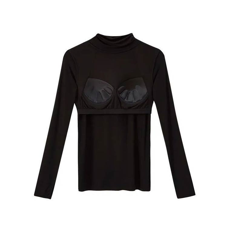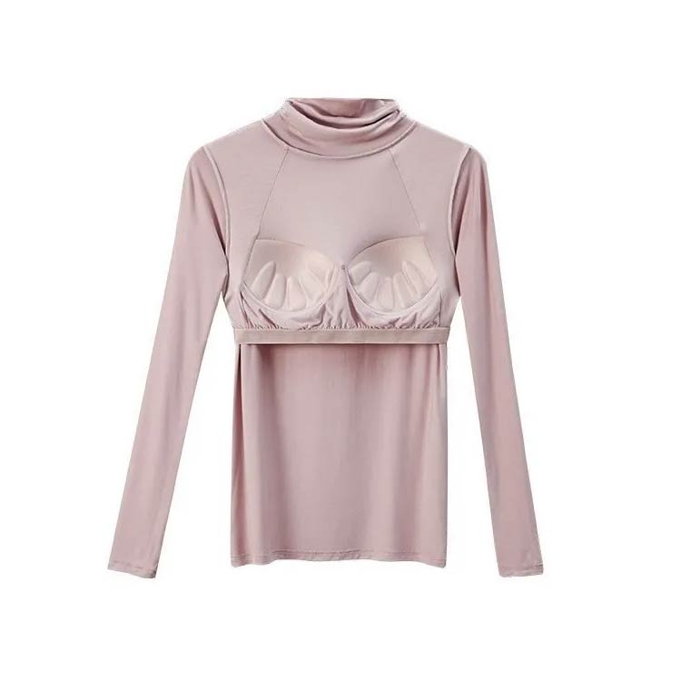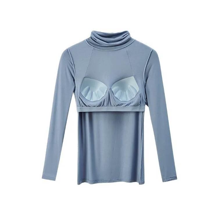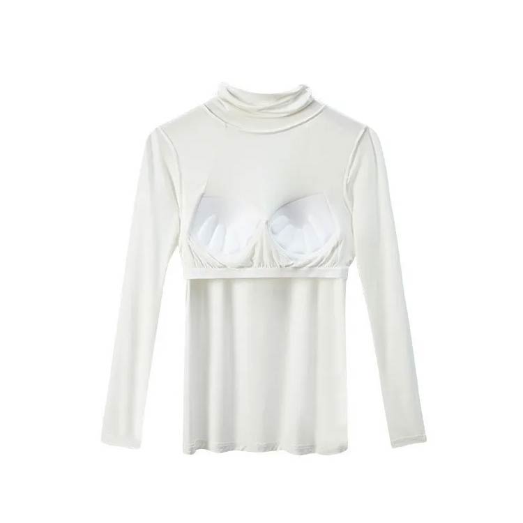 カップ付き 長袖 タートルネック トッ