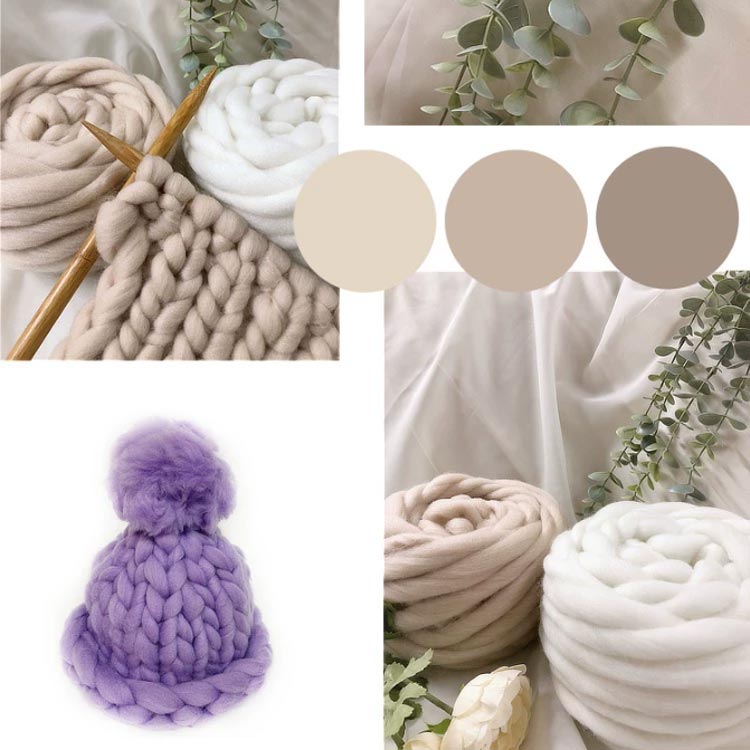 ふわふわで肌触りのいい起毛生地を採用しているので、バッグから座布団・毛布まで幅広いアイテムを編むのに適しています。