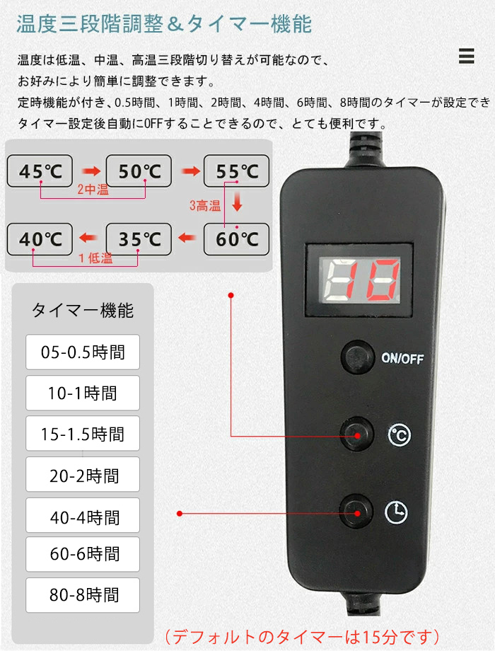 温度三段階調整&タイマー機能
