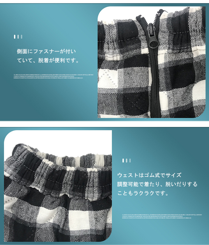 4ウェストはゴム式でサイズ調整可能で着たり、脱いだりすることもラクラクです。