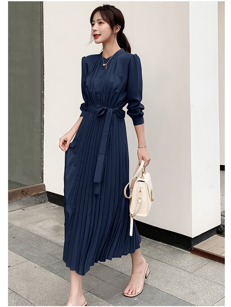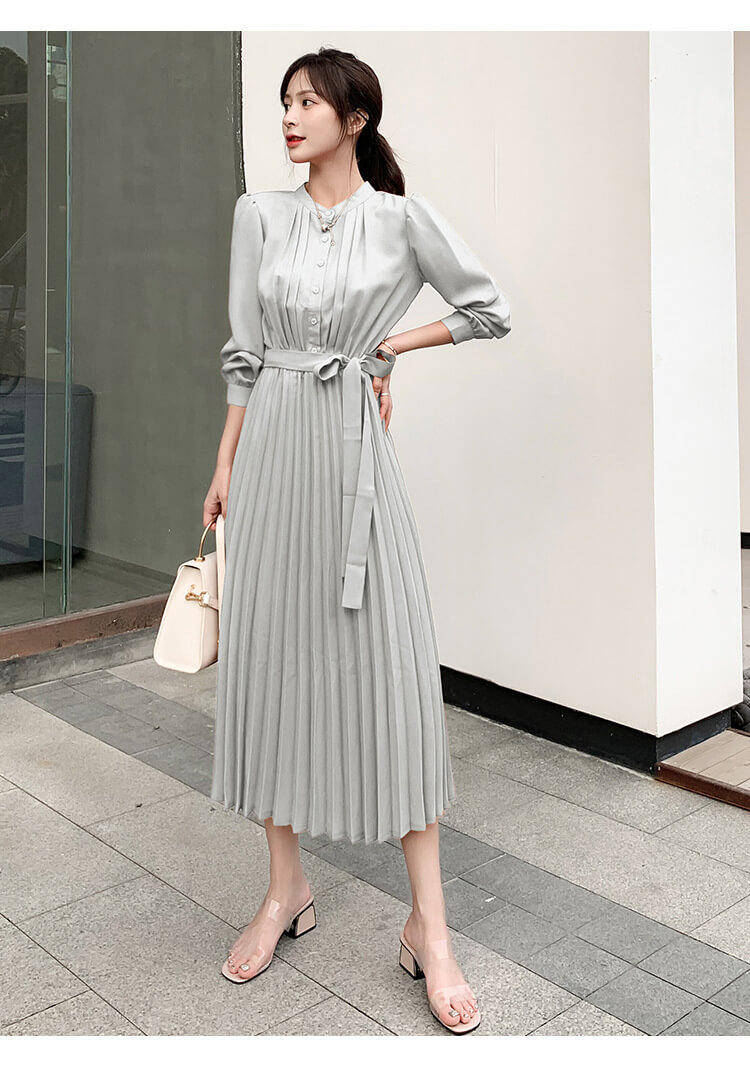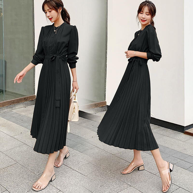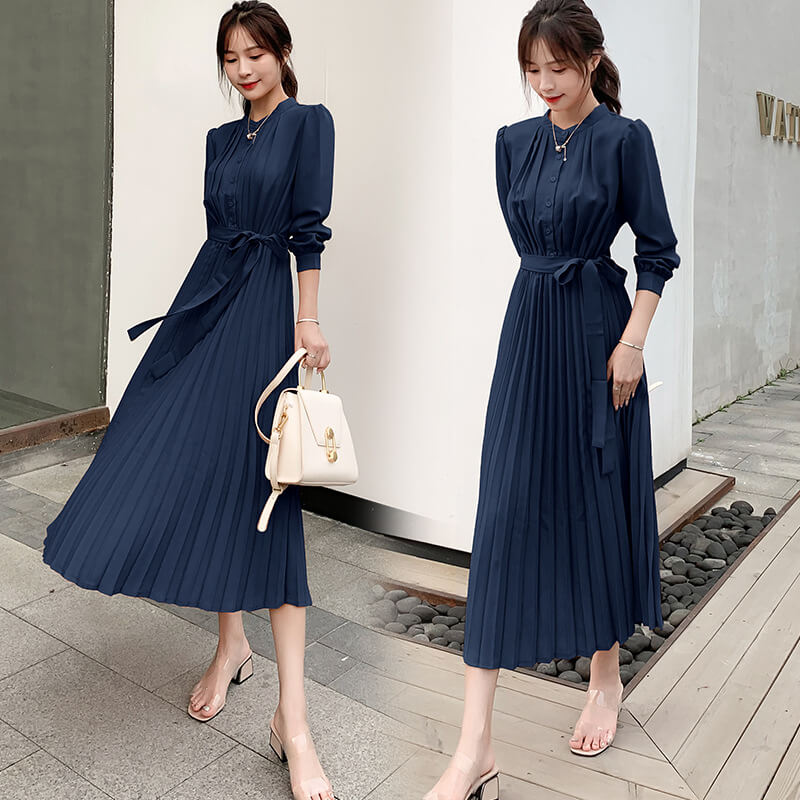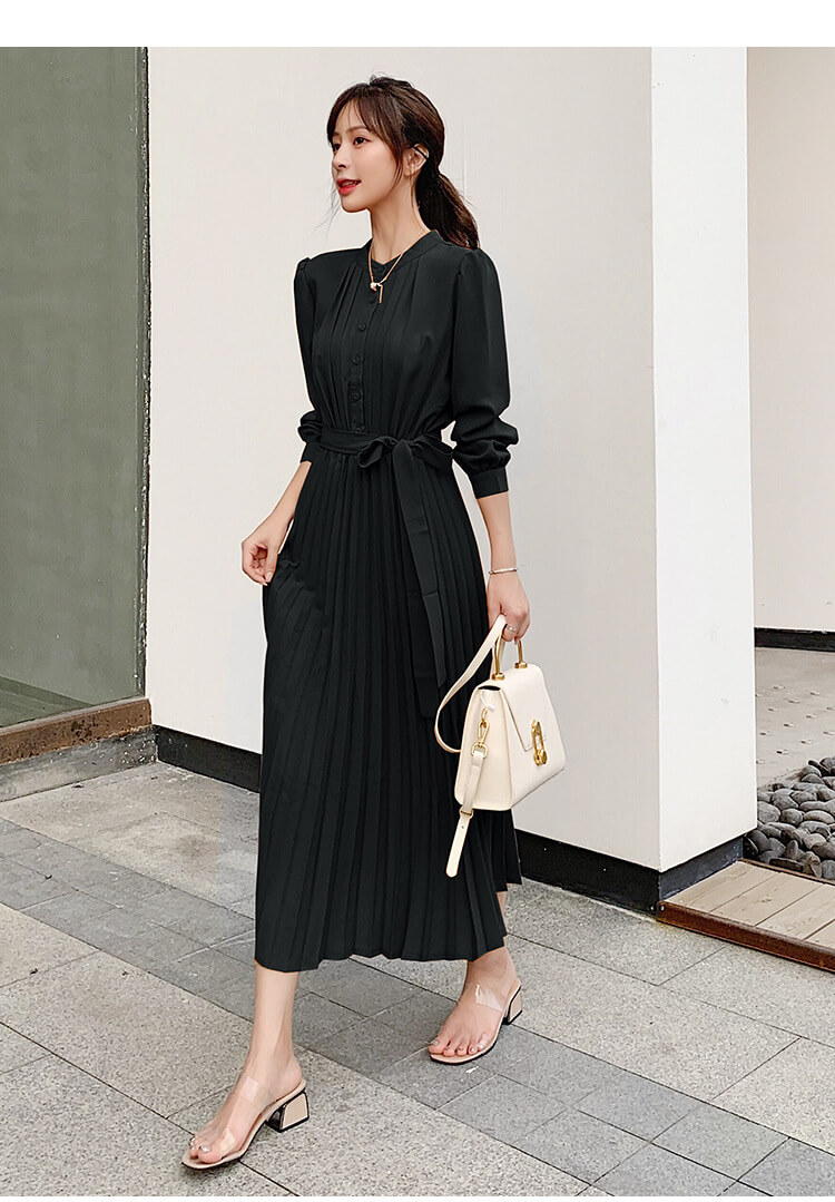 ワンピース レディース ロングワンピース シャツワンピース きれいめ Aライン ロング シャツ 前開き マキシ丈 プリーツ 長袖 大きいサイズ 大人 上品 フォーマル 結婚式 パーティー ドレス 秋冬