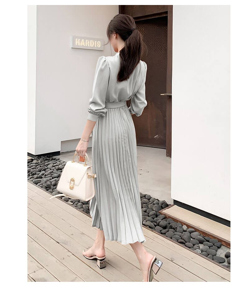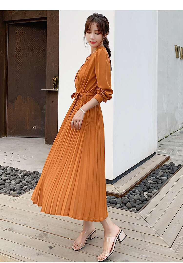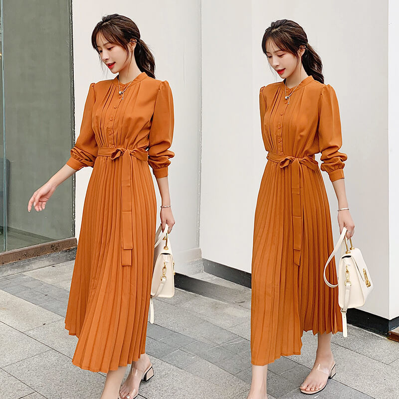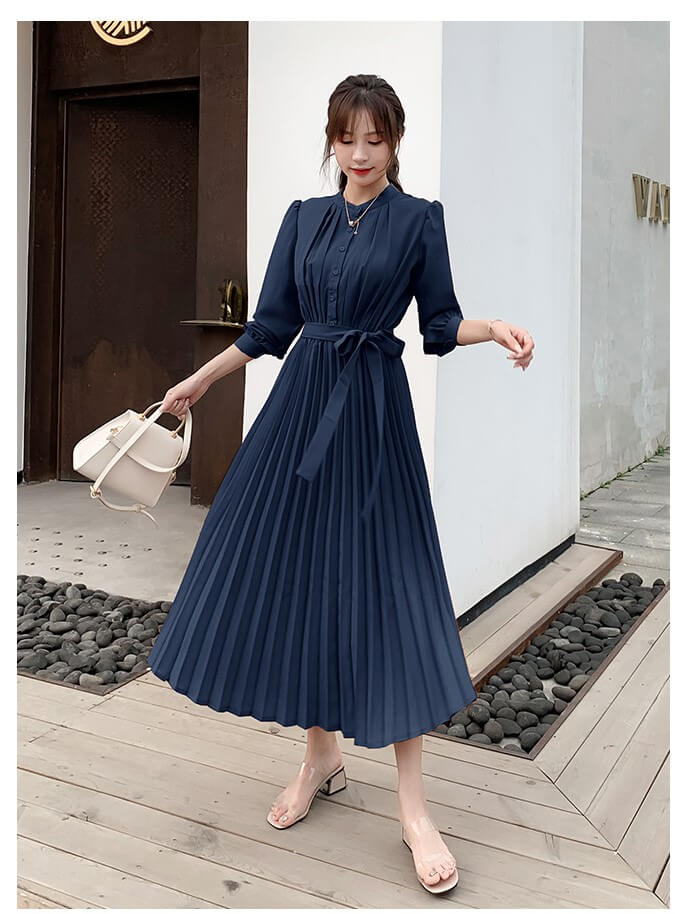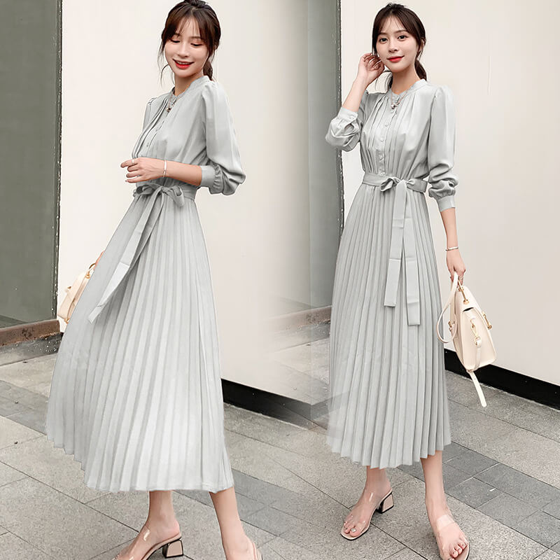 ワンピース レディース ロングワンピース シャツワンピース きれいめ Aライン ロング シャツ 前開き マキシ丈 プリーツ 長袖 大きいサイズ 大人 上品 フォーマル 結婚式 パーティー ドレス 秋冬