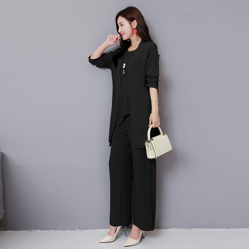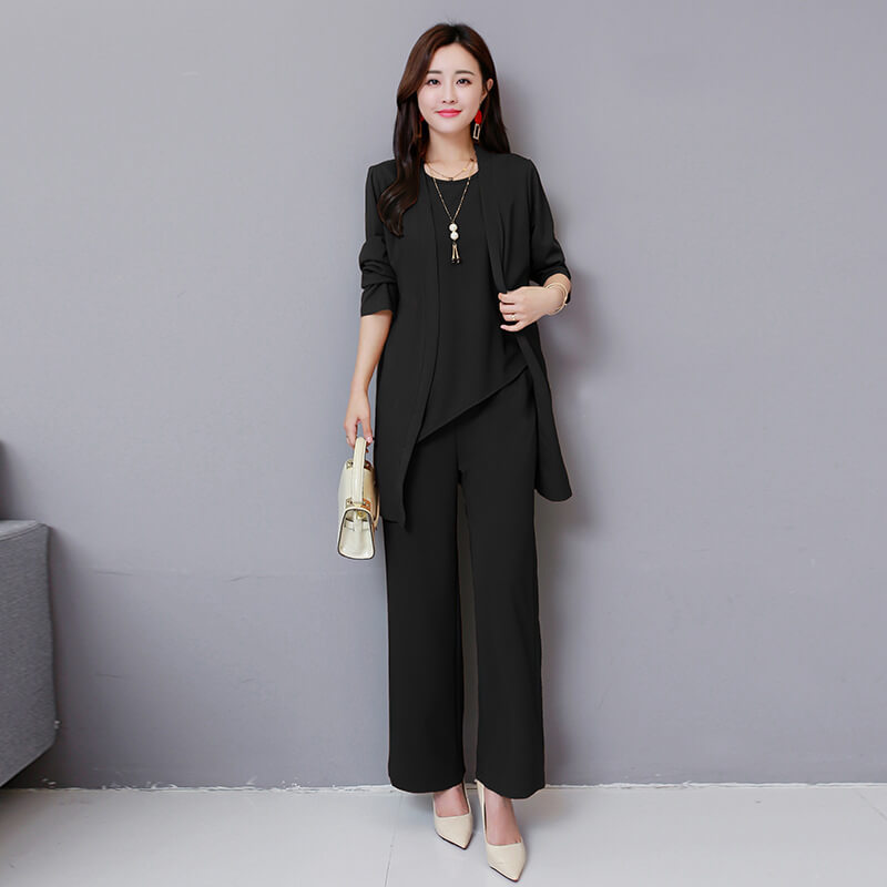 セットアップ パンツスーツ レディース 3点セット パンツドレス フォーマル ブラウス ガウチョパンツ ワイドパンツ ロング パンツ 長袖 大きいサイズ オフィス OL 通勤 着痩せ 春 夏 秋 冬