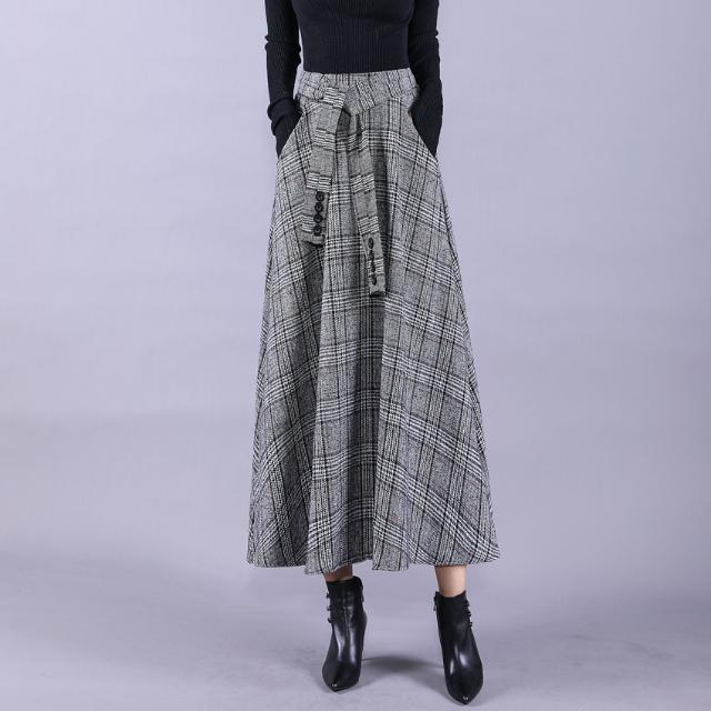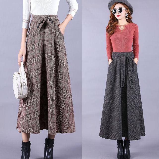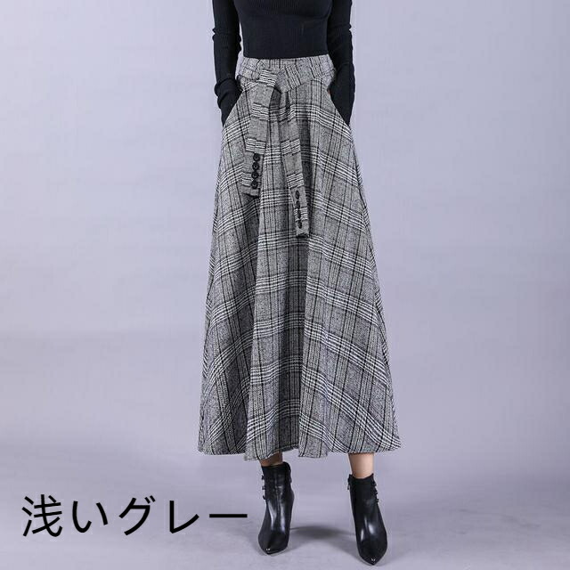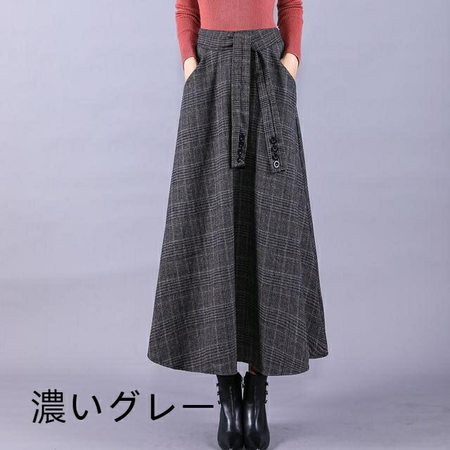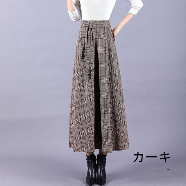 スカート レディース チェック柄 フレアスカート ウール混 ボトムス Aライン フレア レディース ロングスカート ロング マキシ 膝下 ひざ下 大きいサイズ ゆったり マキシスカート ハイウエストス