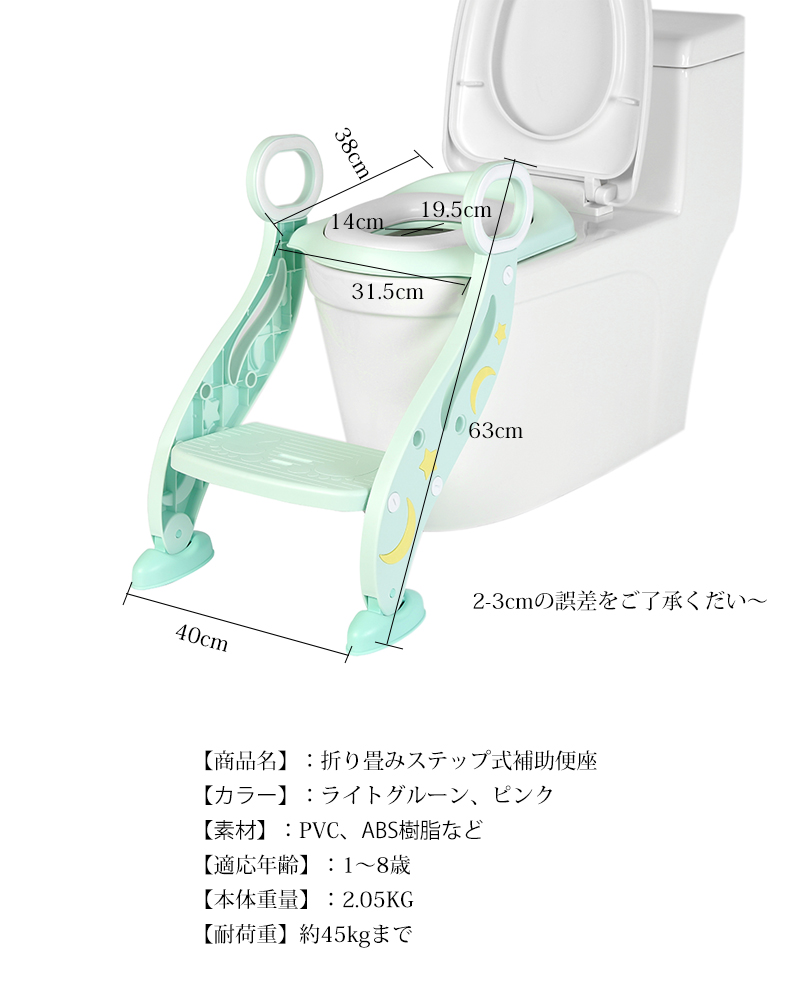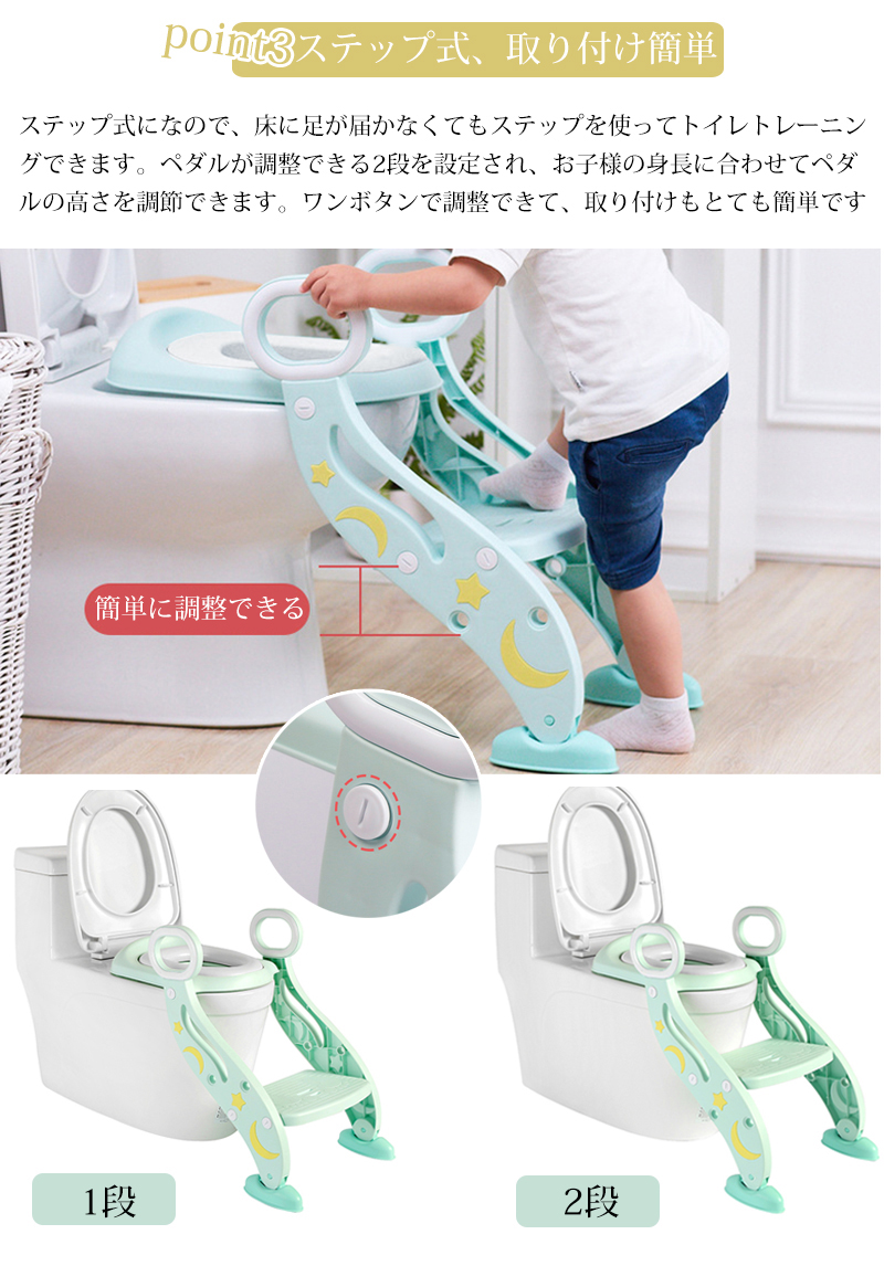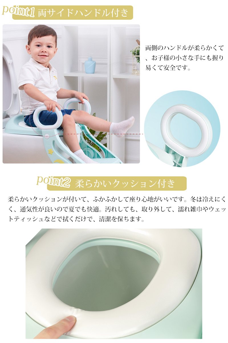 1~8歳のお子様のために設計されたすステップ式補助便座です 2重滑り止め、安定感十分、両サイドに取っ手あり子供の独立性を鼓舞します