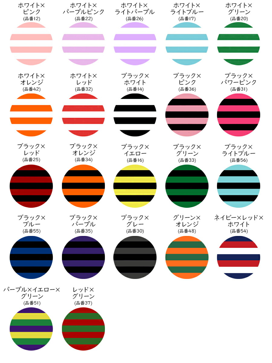 カラー: ホワイトxピンク12 ホワイトxパープルピンク22 ホワイトxライトパープル26 ホワイトxライトブルー17 ホワイトxグリーン20 ホワイトxオレンジ42 ホワイトxレッド32 ブラックxホワイト14 ブラックxピンク36 ブラックxパワーピンク31 ブラックxレッド25 ブラックxオレンジ34 ブラックxイエロー16 ブラックxグリーン33 ブラックxライトブルー56 ブラックxブルー55 ブラックxパープル35 ブラックxグレー30 グリーンxオレンジ48 ネイビーxレッドxホワイト54 パープルxイエローxグリーン51 レッドxグリーン37