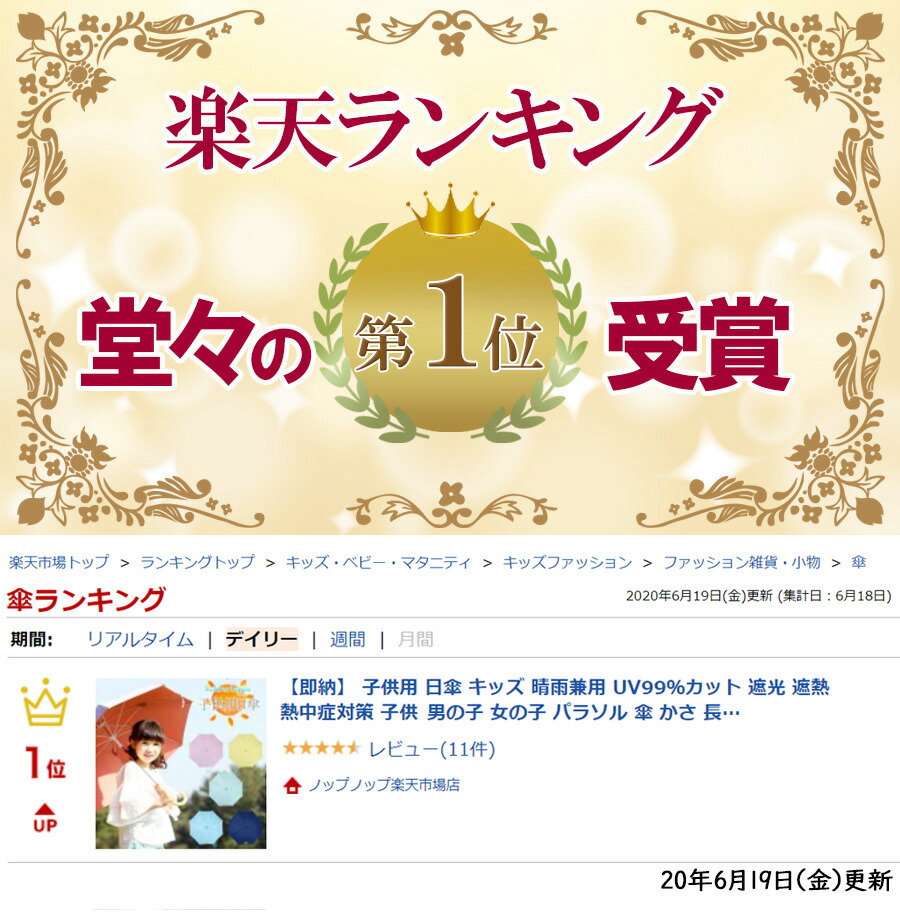 レビューを書くと保証延長 名入れの合わせ買いオプションあり 有料で名入れ可能 幼稚園や保育園キッズにおすすめのかわいい子供用日傘 紫外線を強力カットし、熱も遮断♪