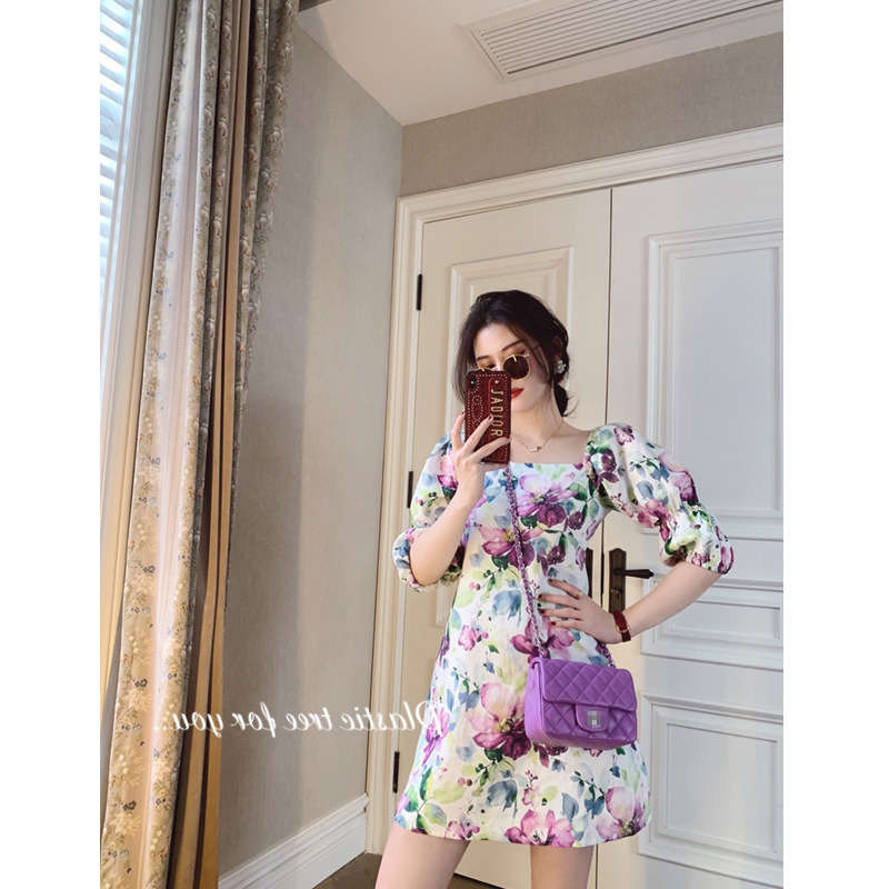 タイトワンピ パフスリーブ 五分袖 ス