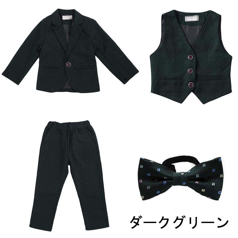 商品名 男の子スーツセットカラー ダークグリーン ブラック ネイビー素 材 ホリエスト+コットン商品サイズ(CM) 90:着丈:39cm 袖丈:35cm ウエスト:55cm パンツ丈:53cm 肩幅:25.5cm ベスト丈:29.5cm バスト:27.5cm