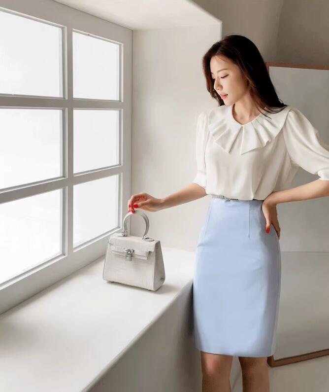 ◆女らしい印象を与える、通勤とオフィスにピッタリなスーツ風スカート。
