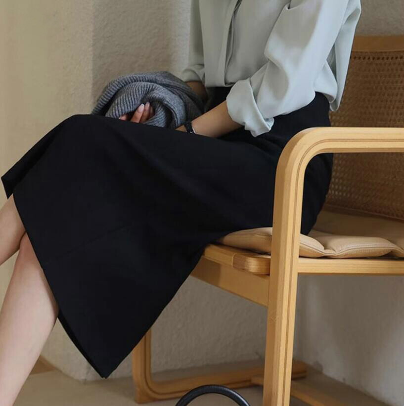 ◆女らしい印象を与える、通勤とオフィスにピッタリなスーツ風スカート。
