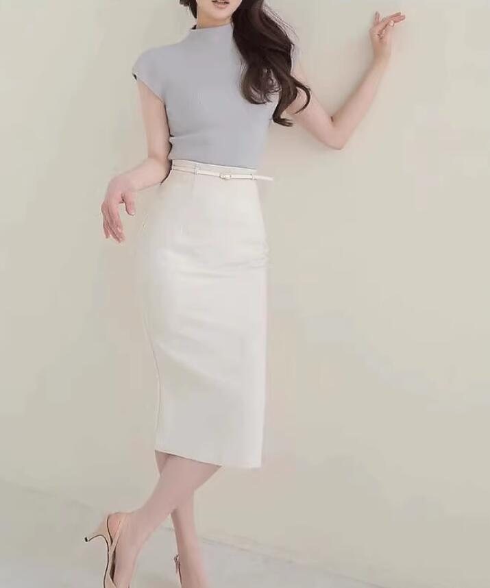 ◆女らしい印象を与える、通勤とオフィスにピッタリなスーツ風スカート。