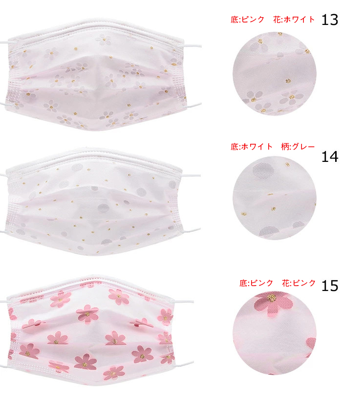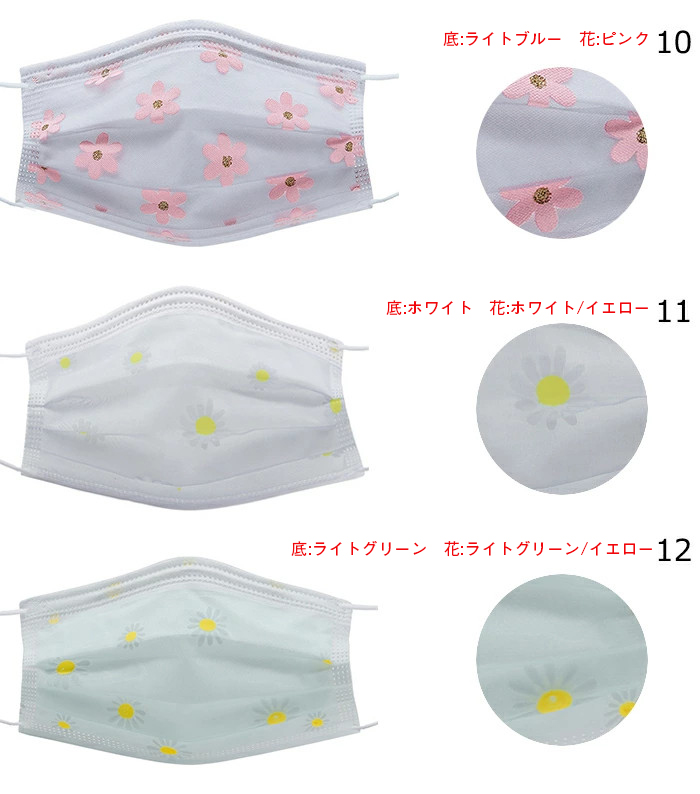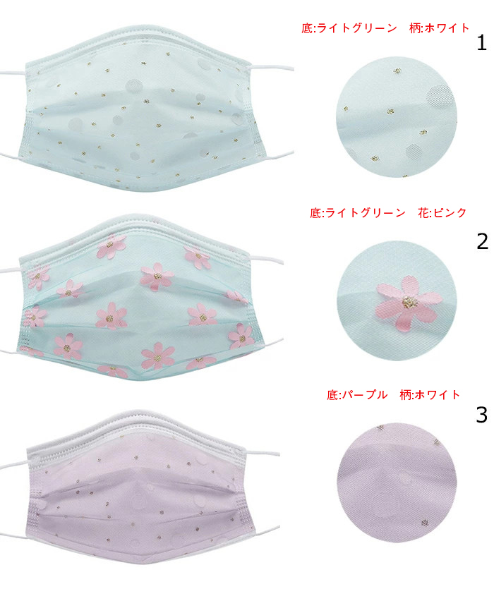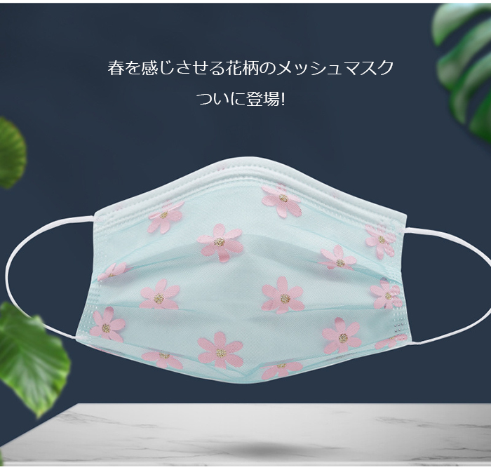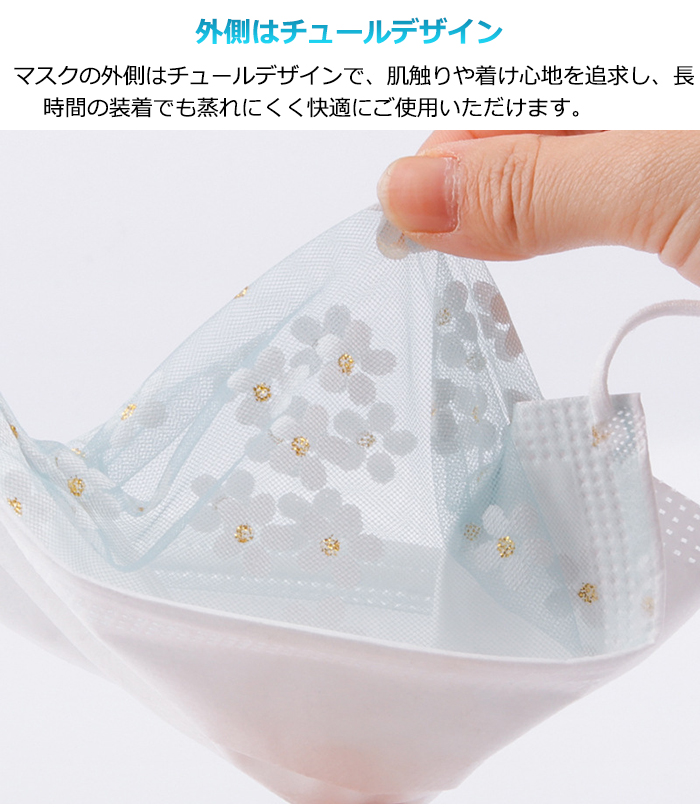 マスク 50枚セット 花柄 チュール付