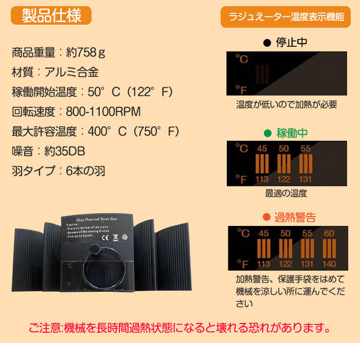 日本語説明書 2023改良最新版 ストーブファン 温度計付き 石油ストーブ 寒さ対策 火力熱炉ファン 寒さ対策 暖房用 空気循環 石油ストーブ キャンプ用 ポカポカ