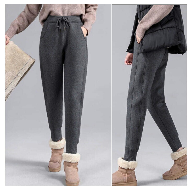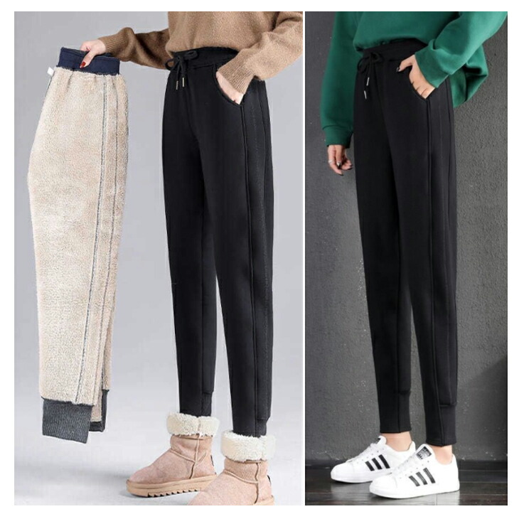 6サイズ 2カラー 裏ボアあったかパンツ ボトムス 真冬 防寒 裏起毛 ジョガーパンツ トラックパンツ ブラック ダークグレー 大きいサイズ ウエスト ゴム レディース