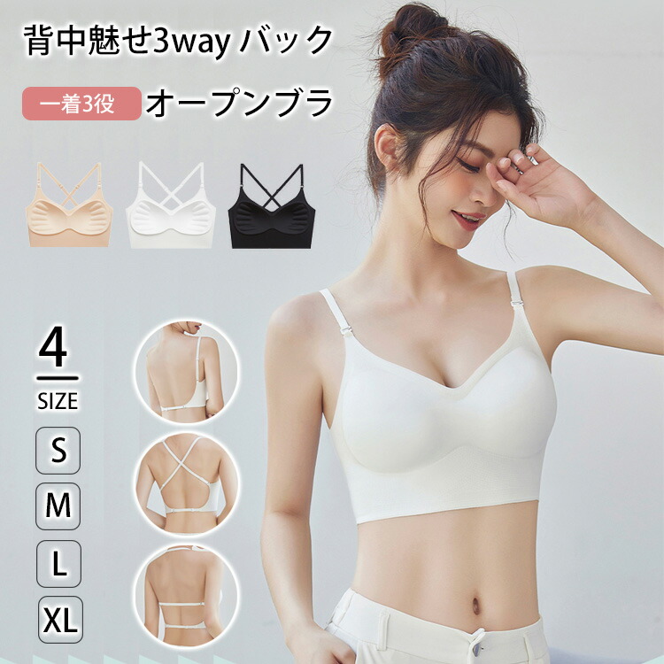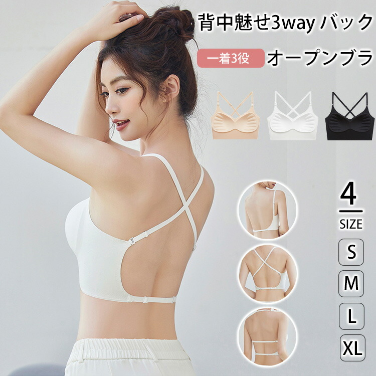 3way バックオープンブラ キャミブラトップ バックストラップ 背中見せ パッド一体型 ブラトップ バッククロス ホルターネック 盛れる